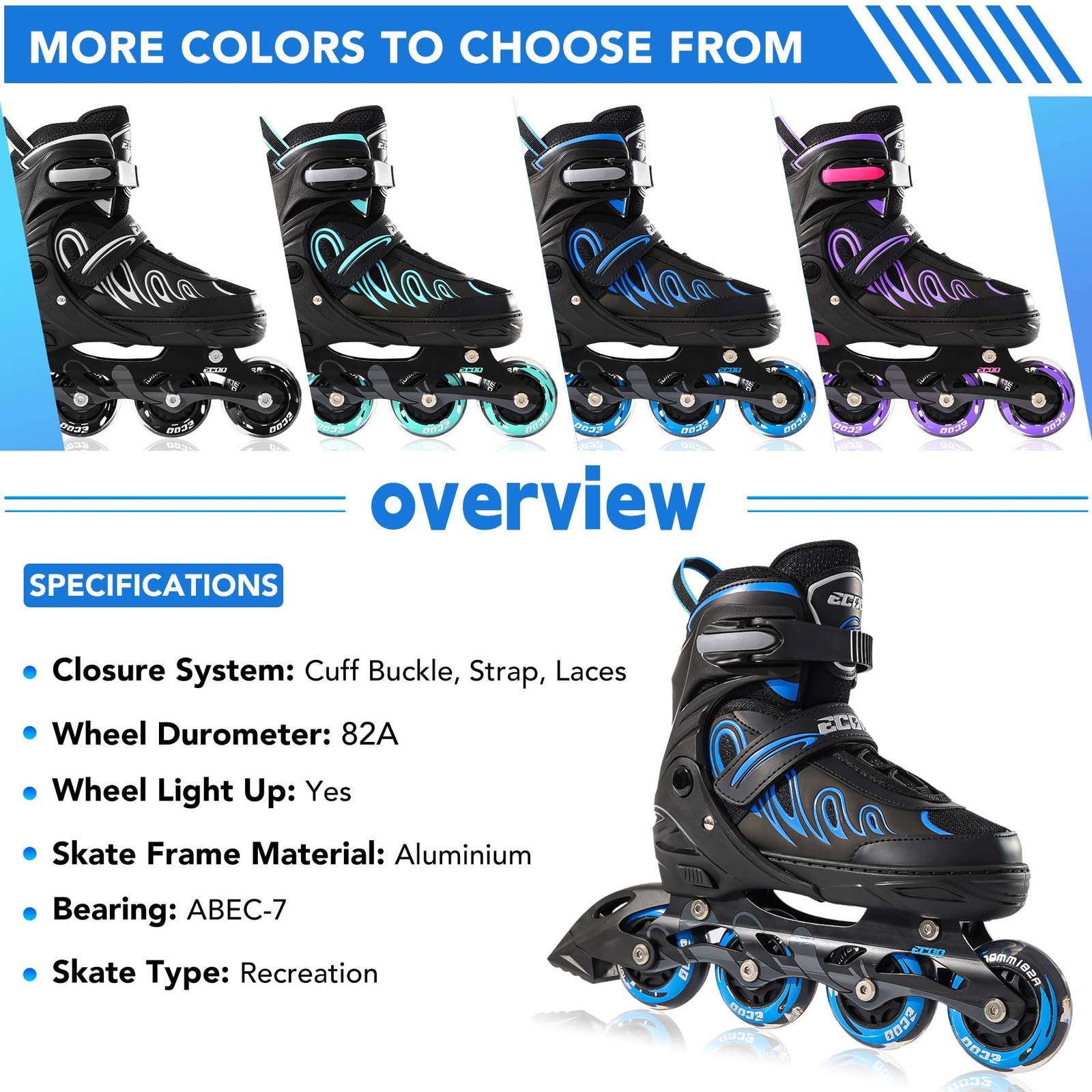 Inline Skates for Girls and Boys Ages 5-8 8-12 Light up Wheels, Adjustable Si...