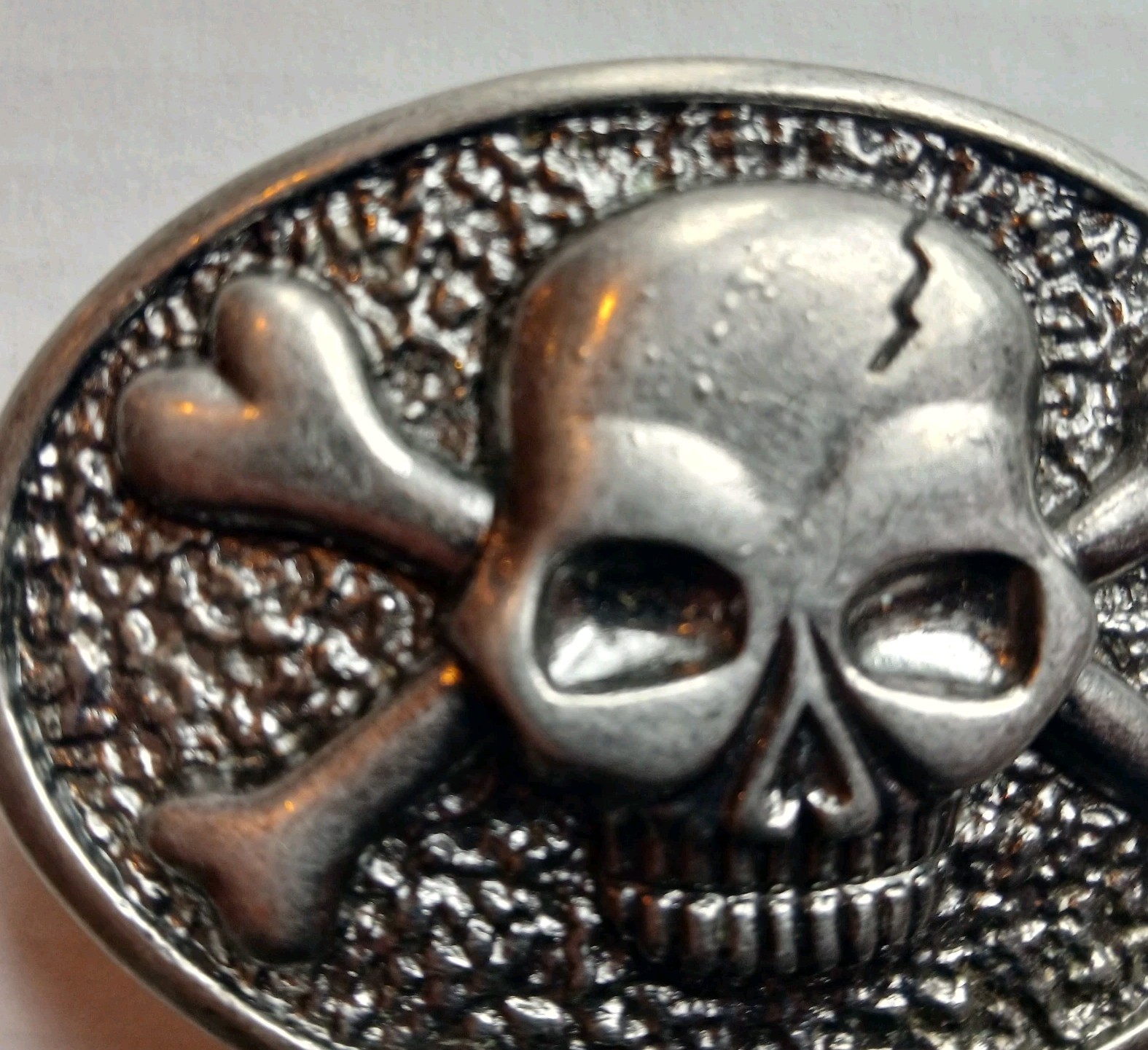 Skull Crossbones 4x2 3/4 Belt Buckle Heavy Textured Front