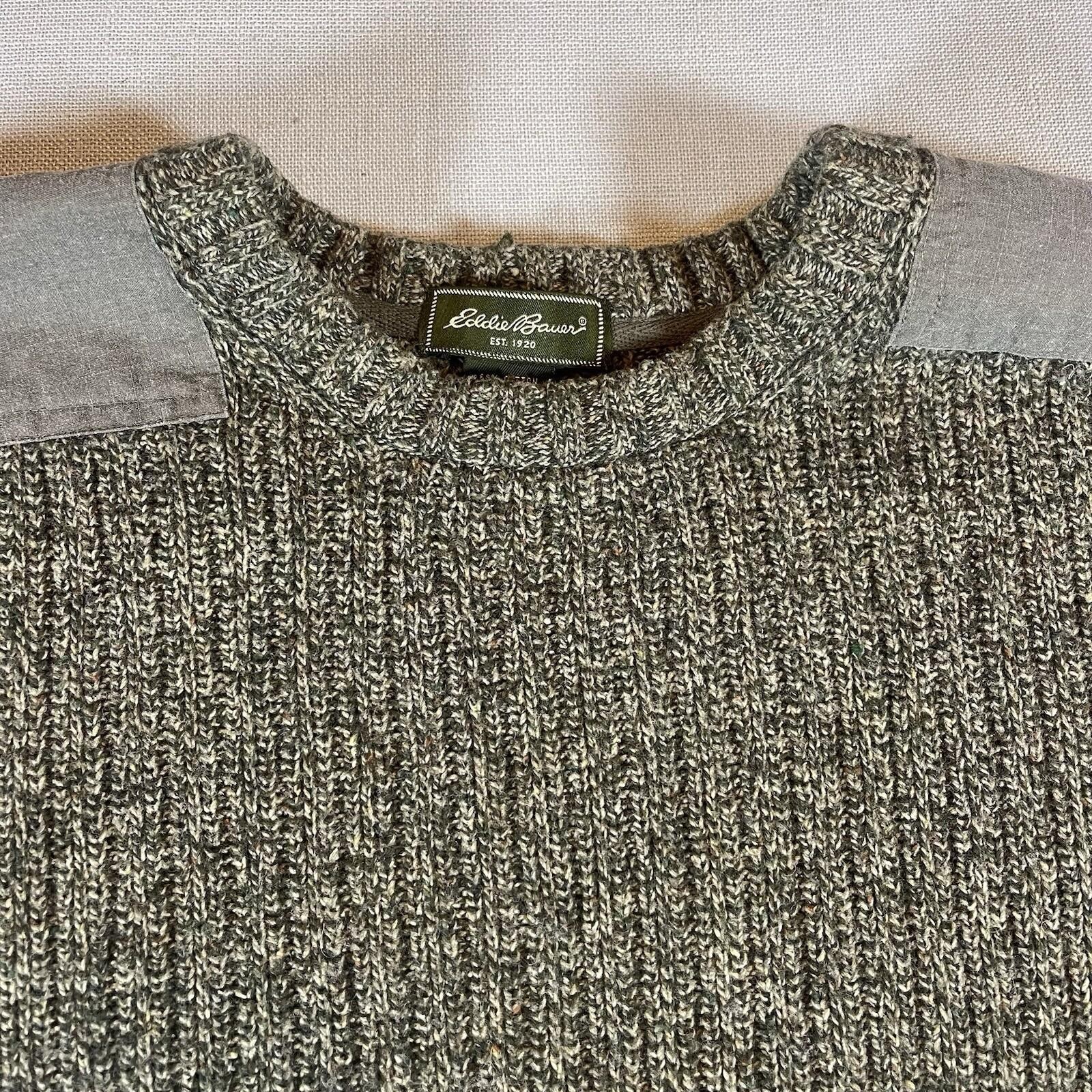 как выглядит Vintage Eddie Bauer Sweater Mens XL Wool Blend Knit Green Elbow Patches READ фото