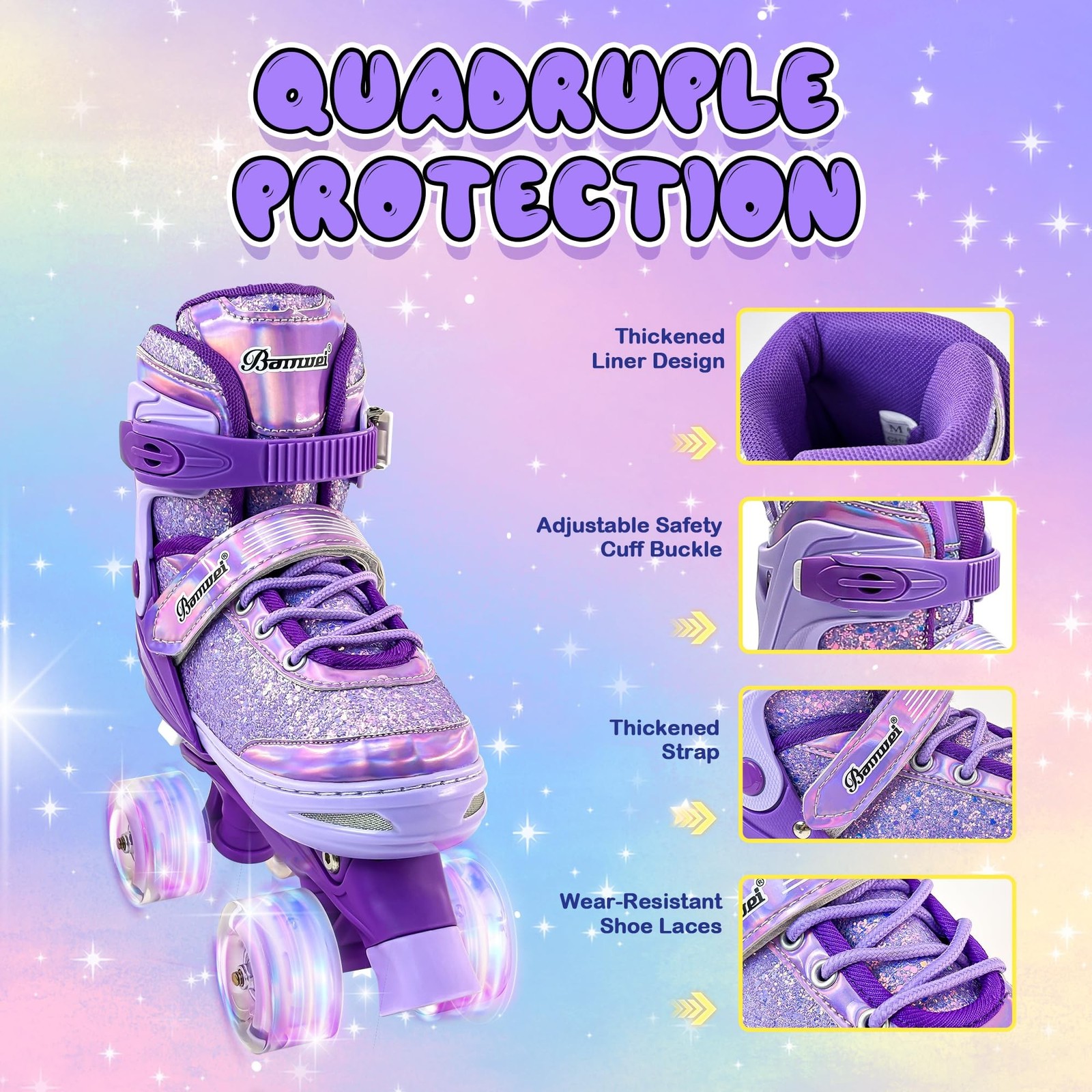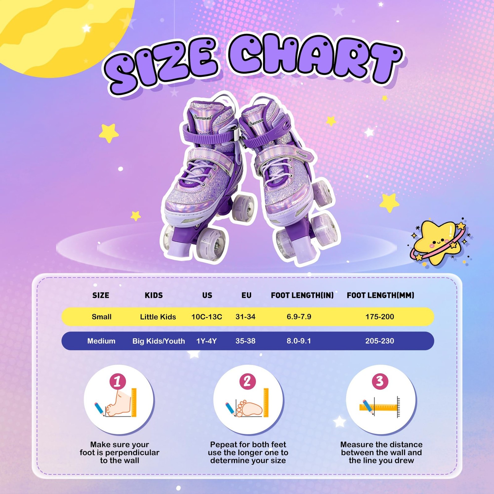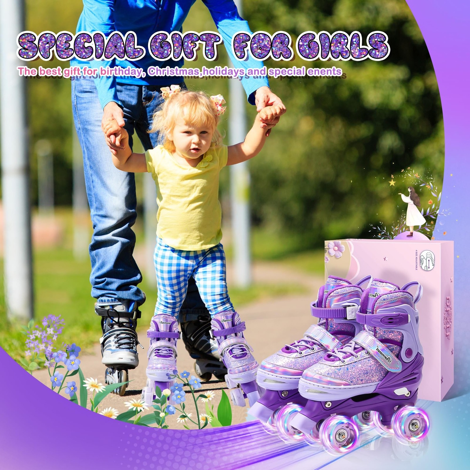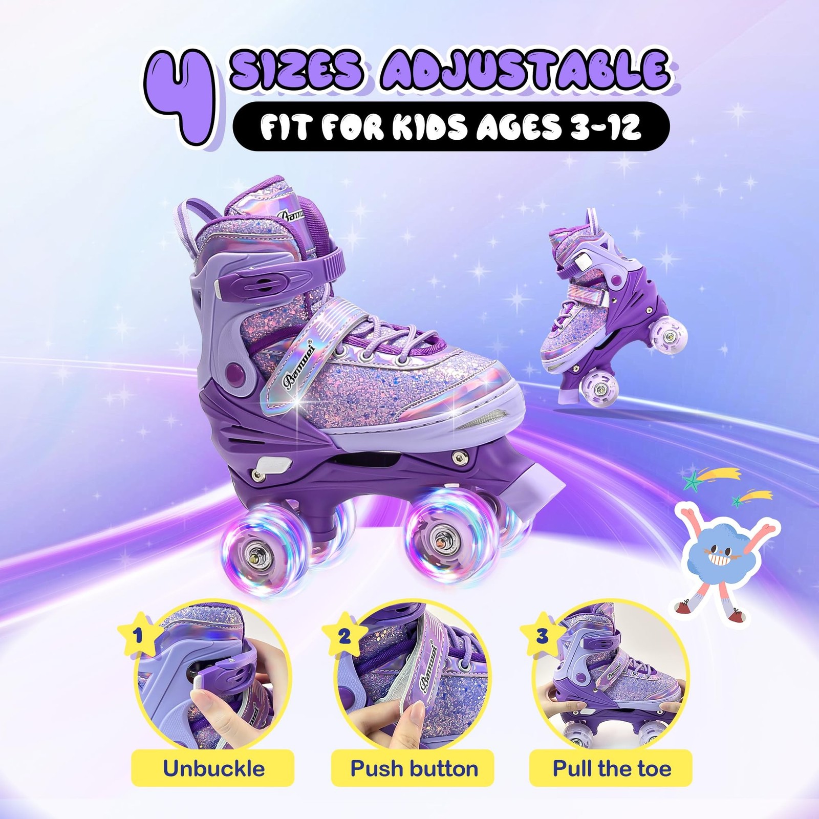 Kids Roller Skates for Girls Boys 4 Size Adjustable Ages 3-5 5-8 6-12 Quad Ro...