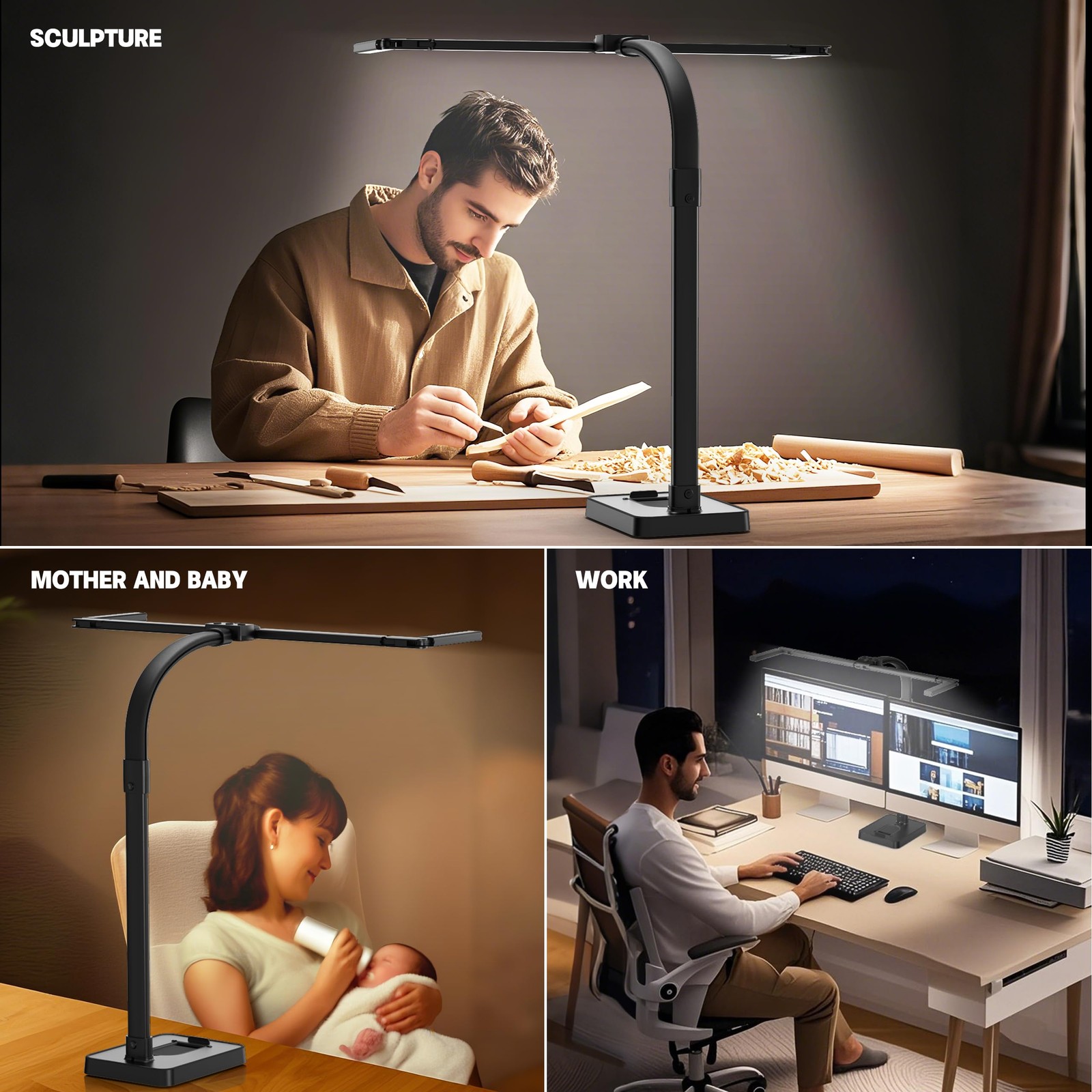 LED Desk Lamp for Home Office - 24W Bright Double Head Desk Light with Clamp ...