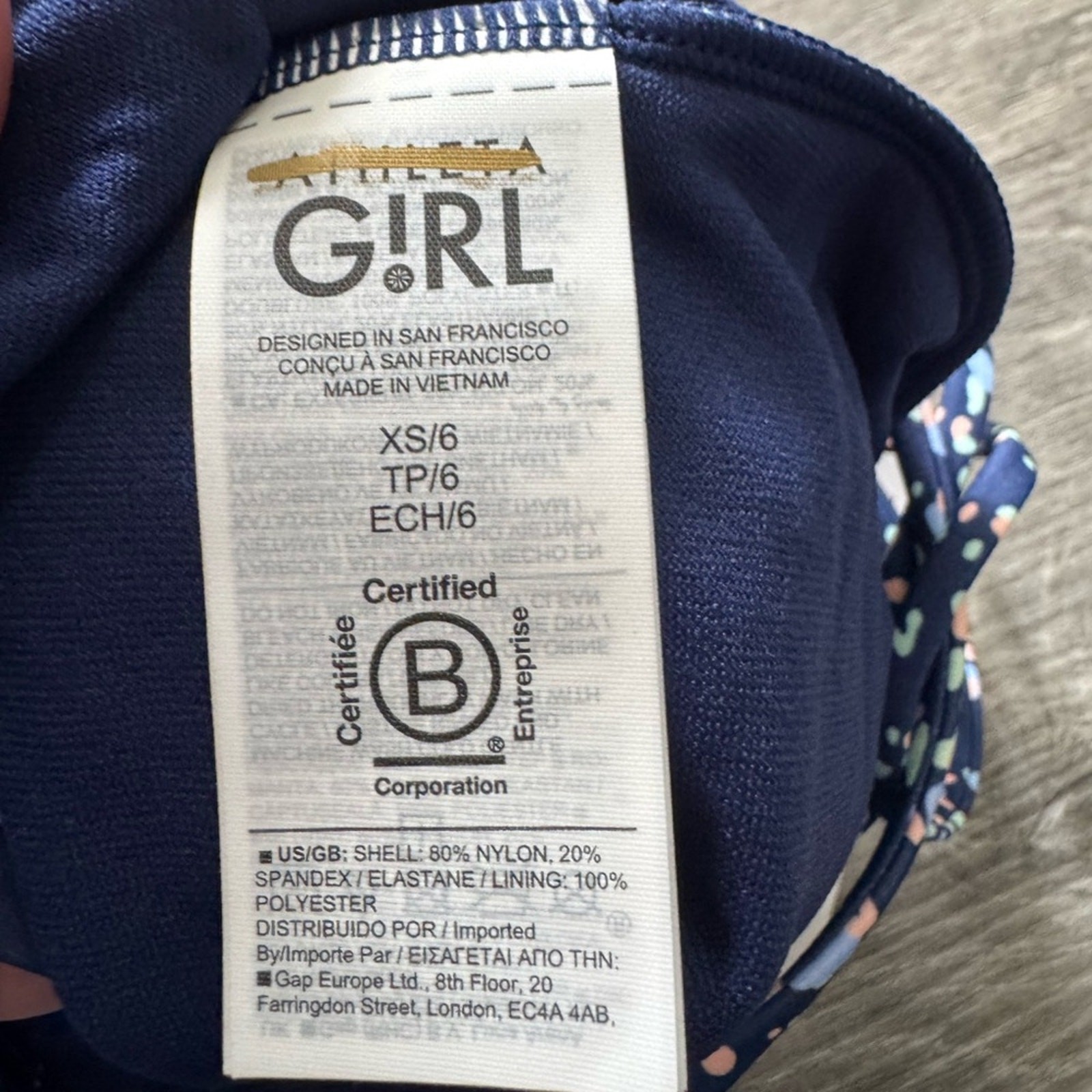 NWT Athleta Girl Gold Coast Crop Tankini Swim Top Navy / Peach / Green Size XS/6