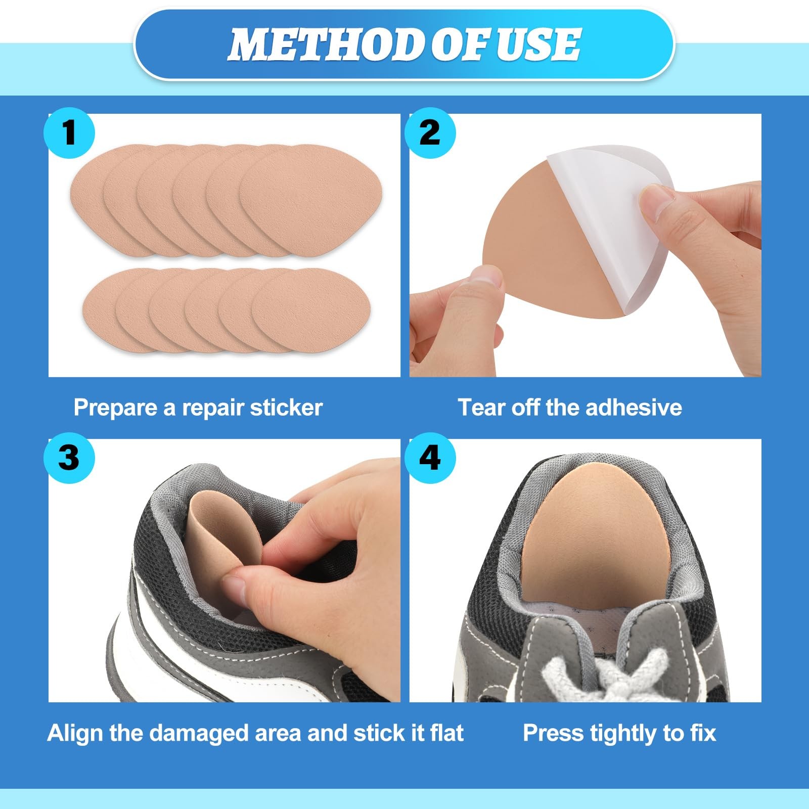 6 Pair Leather Heel Pads, Grips Liner 2 sizes Large and Small , Yellow