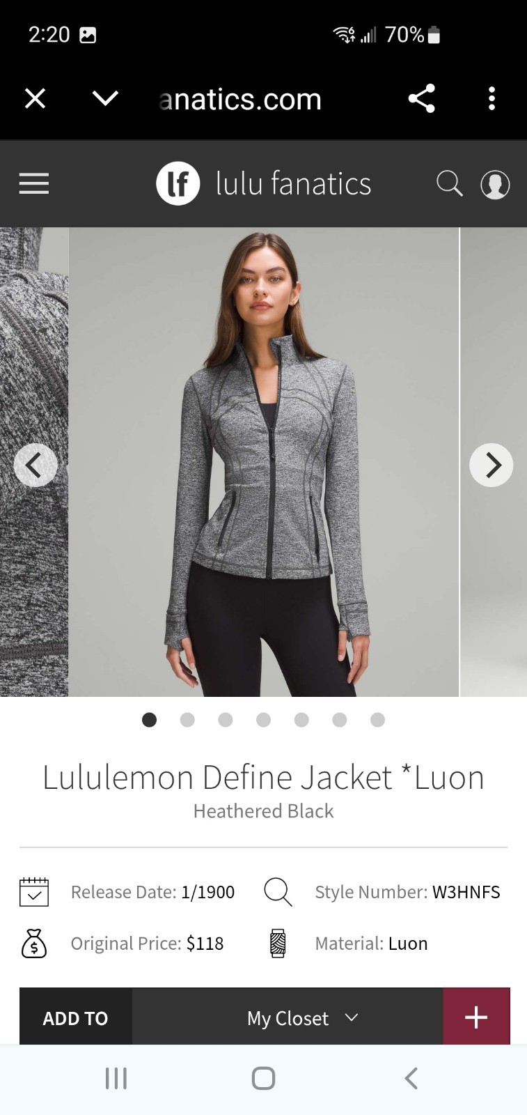 как выглядит Lululemon Size 10 Define Heathered Black Gray Luon Zip Up Vented Jacket W3HNFS фото