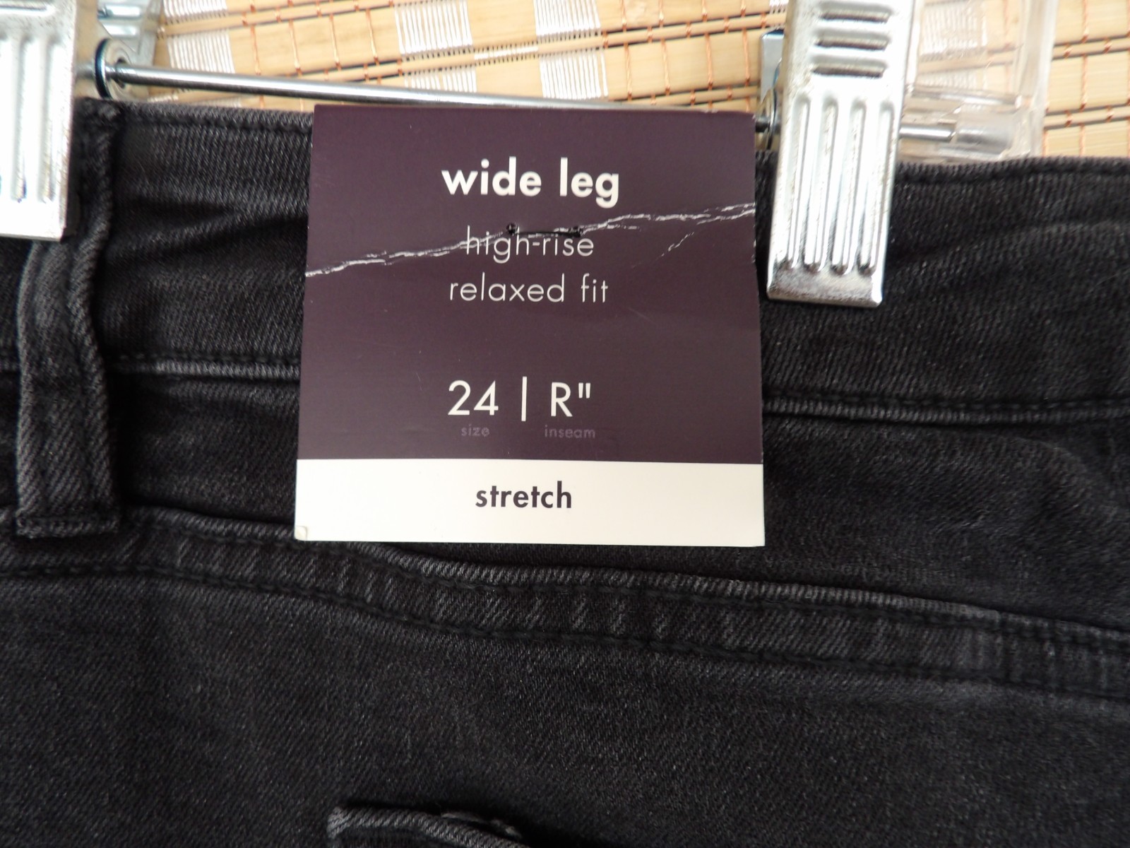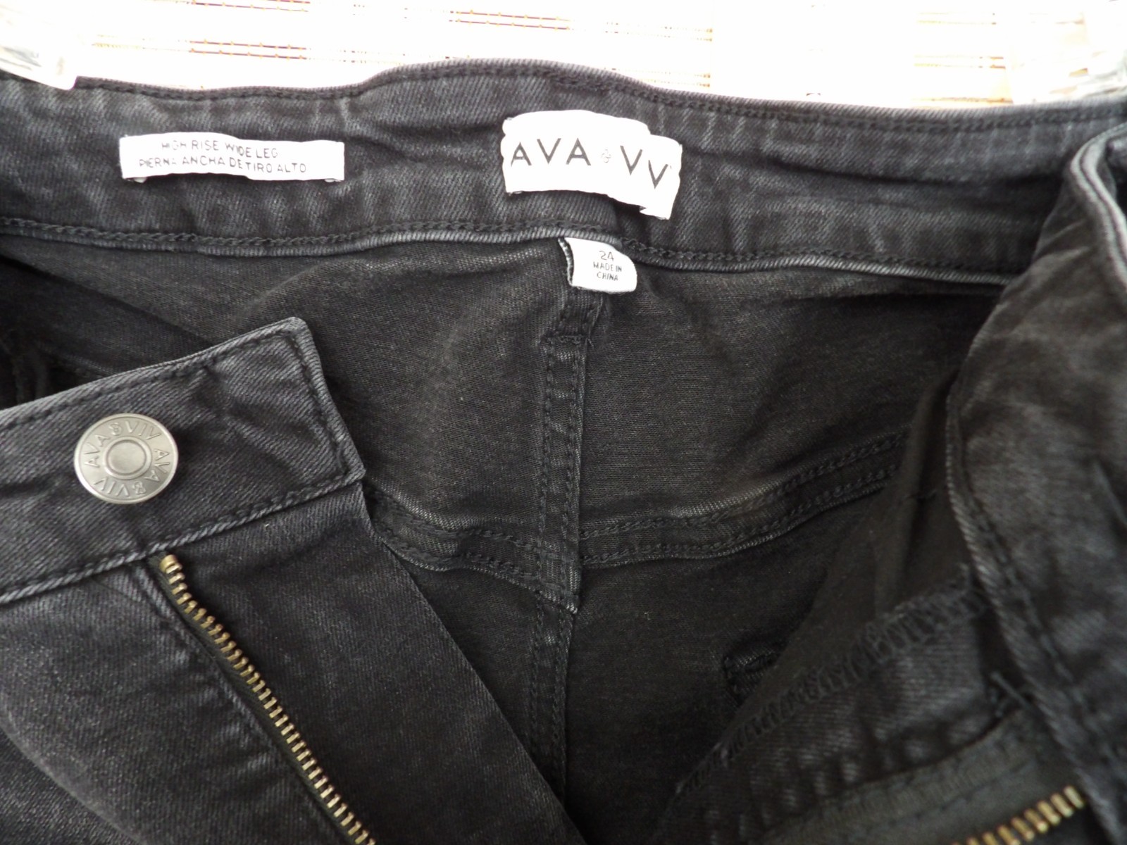 как выглядит Womens Ava Viv Size 24 High-Rise Relaxed Fit Wide Leg Stretch Jeans Black фото