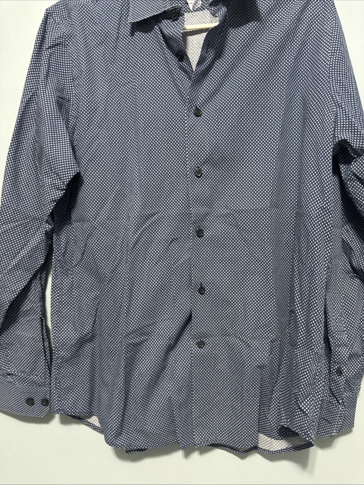 как выглядит Express Men s Pattern Slim Dress Shirt Navy - Size M 15-15 1/2 фото