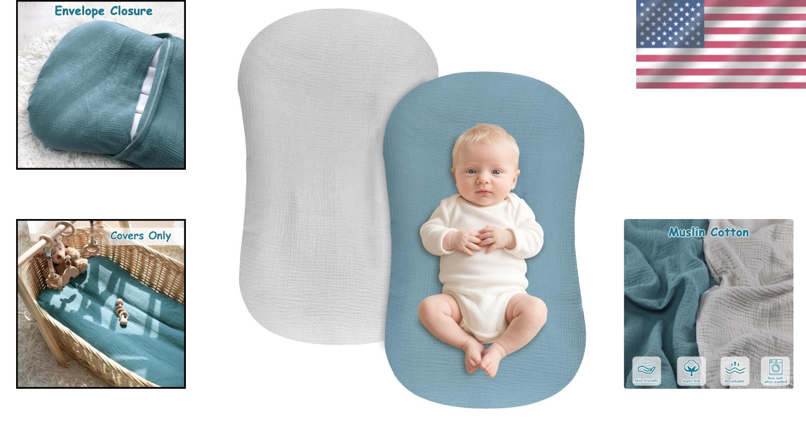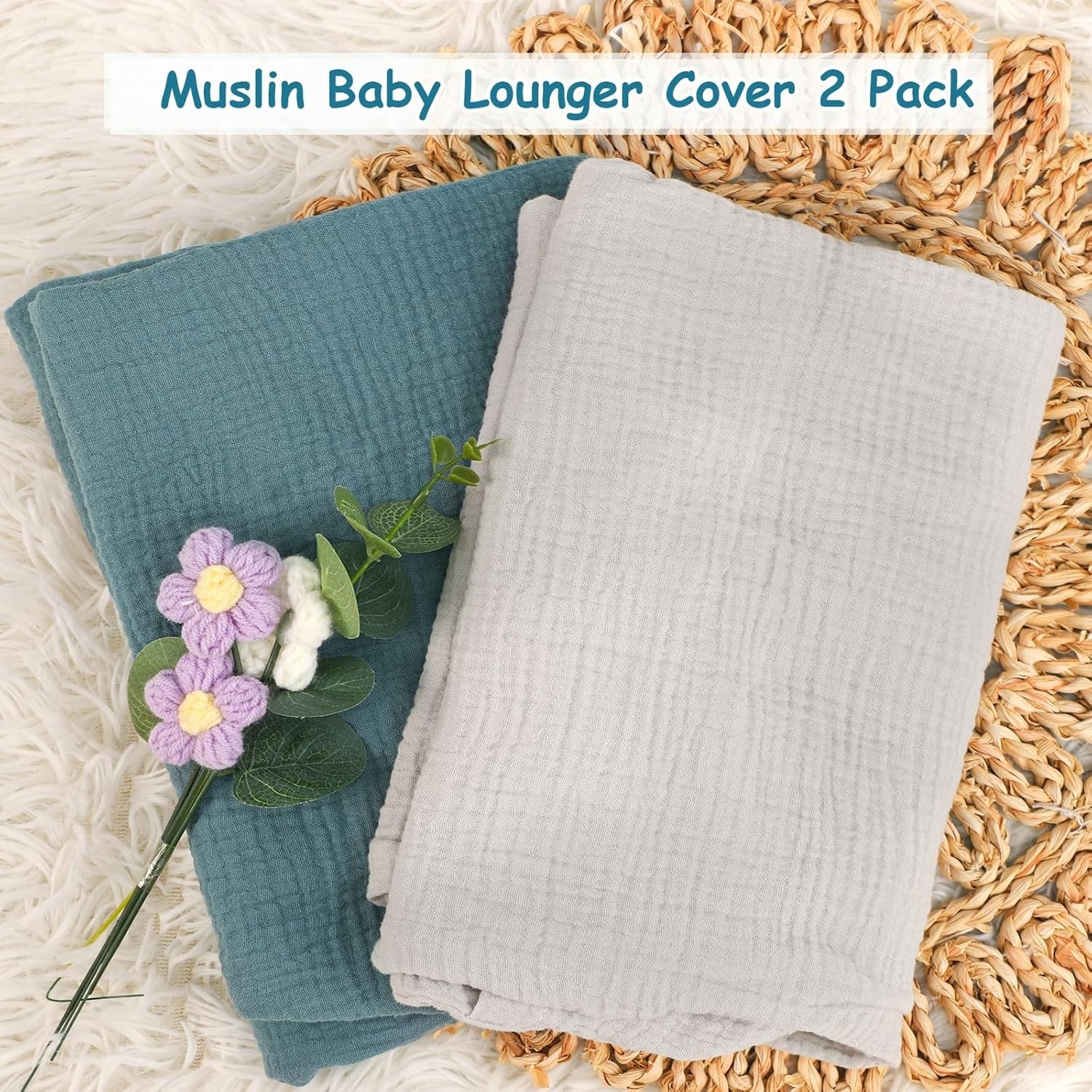 Muslin Cotton Newborn Lounger Pillow Covers - 2pk, Reinforced Stitching