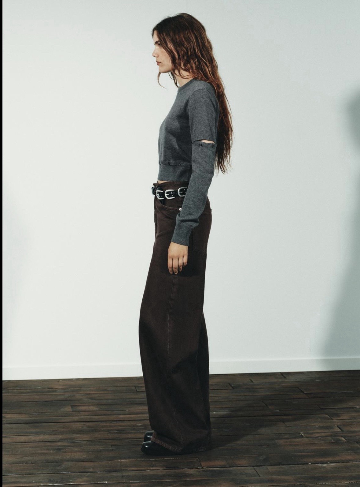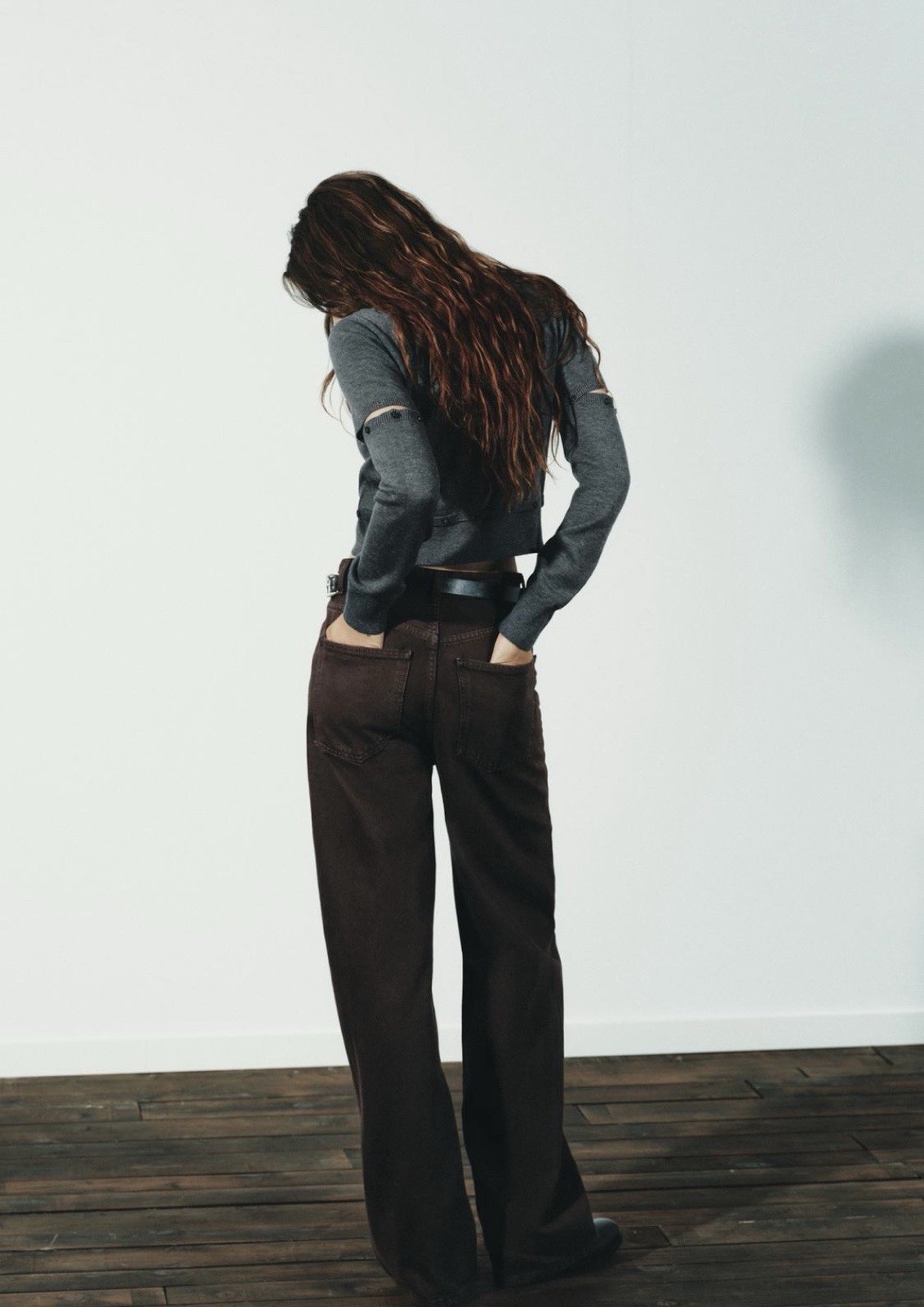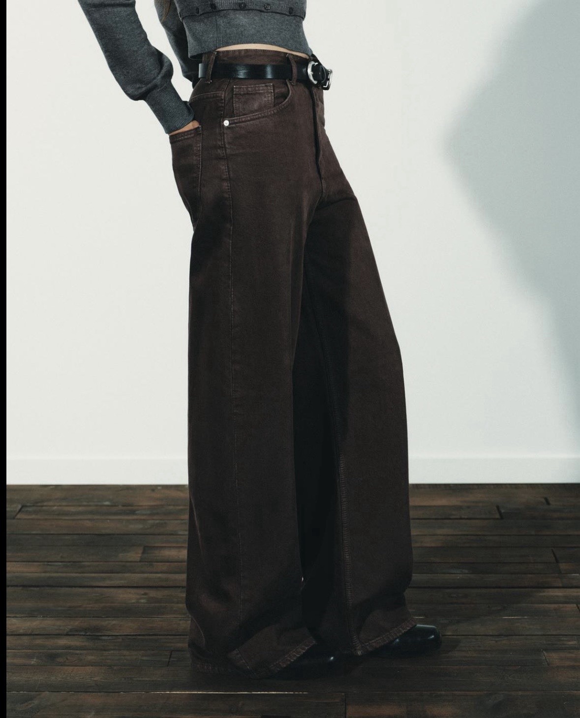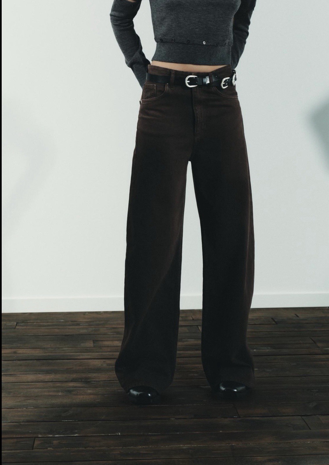 как выглядит ZARA TRF Extra Wide Leg High Waist Jeans Denim 5-pocket Brown Women s Size 6/29 фото
