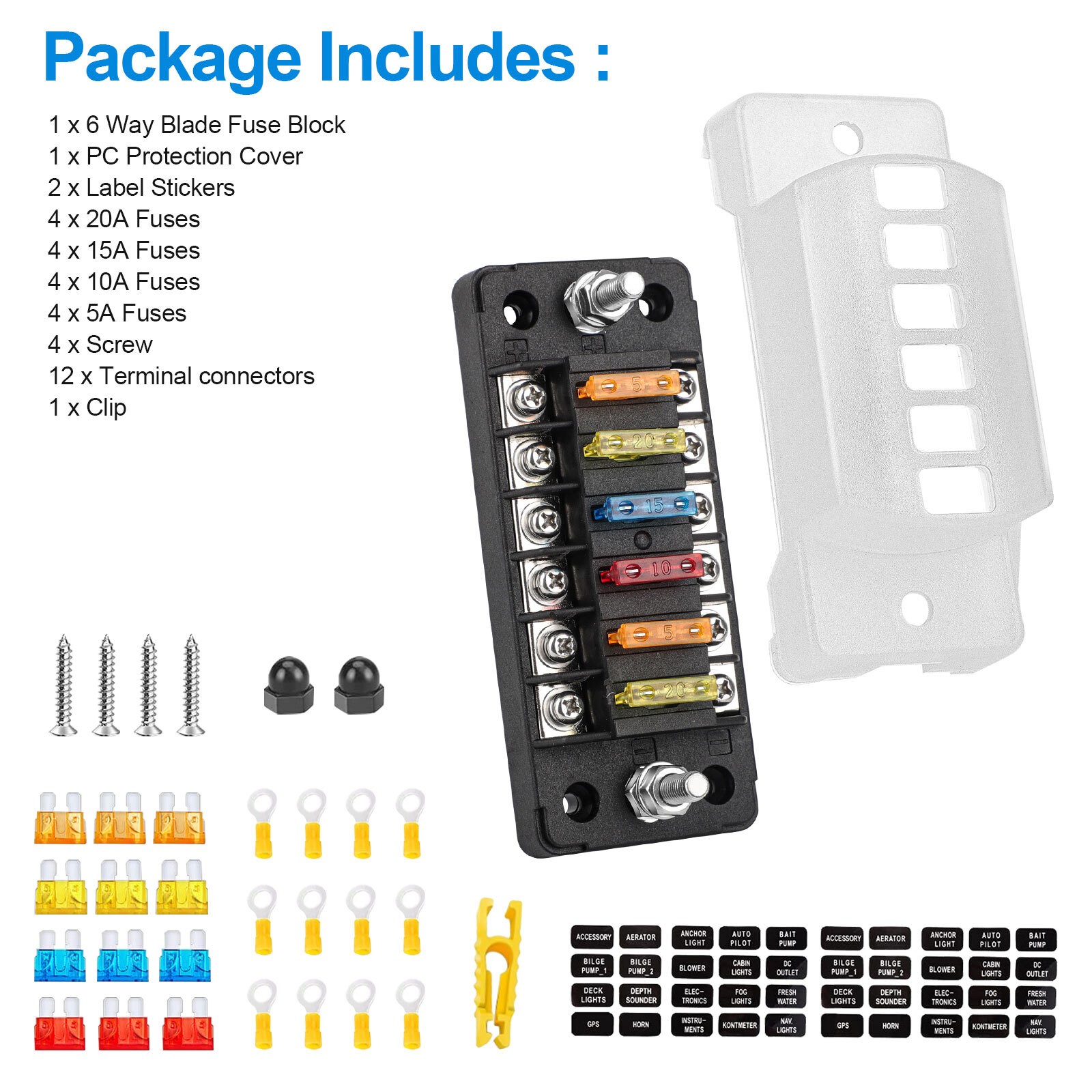 New 6 Way Blade Fuse Block Car Boat Auto Power Distribution Holder Box Kit
