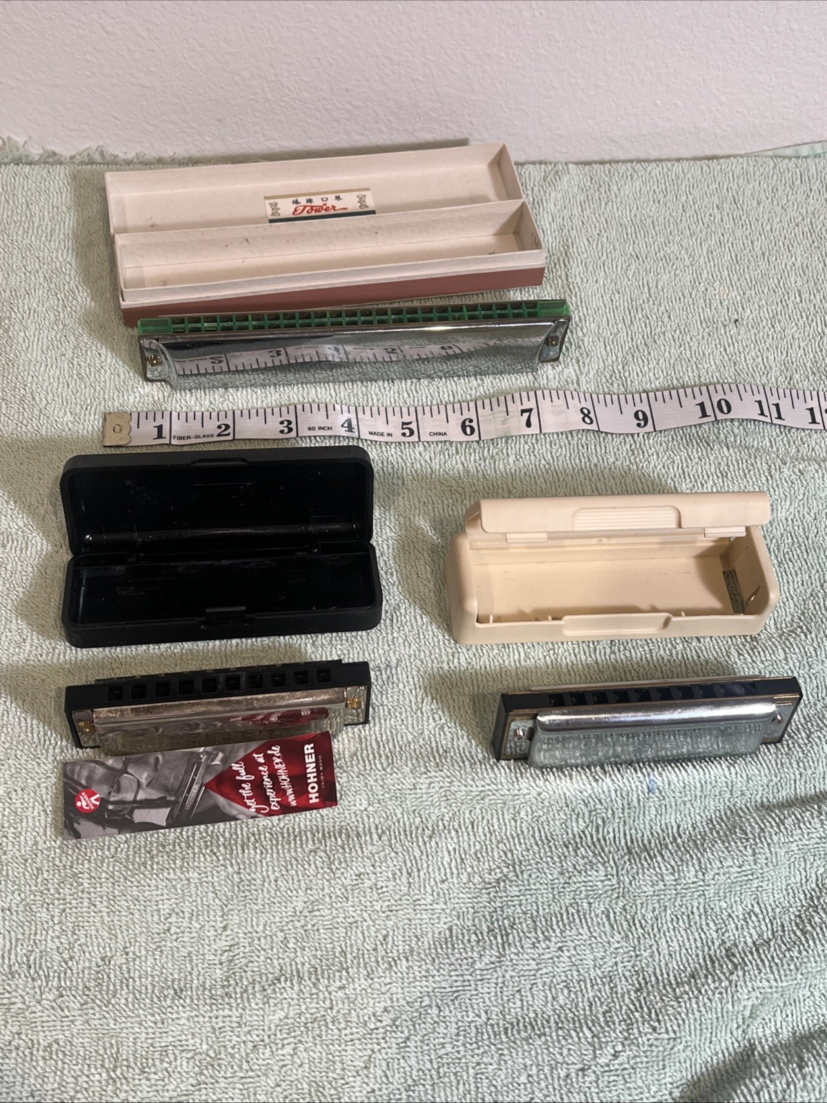 как выглядит Lot Of 3ea Harmonicas In Cases - Blues Bender - Tower - Big River Harp фото