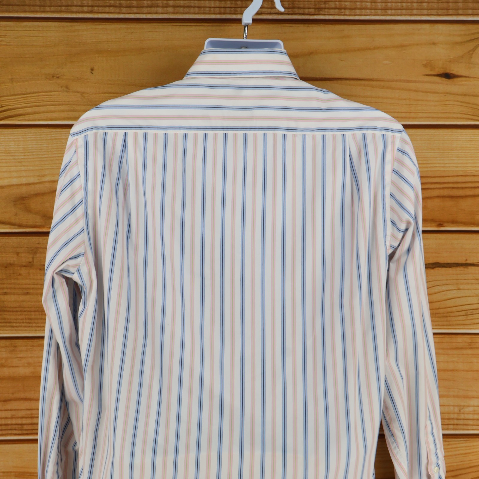 как выглядит Gap Dress Shirt Mens Sz M 15.5 White Colorful Striped Classic Fit Point Collar фото