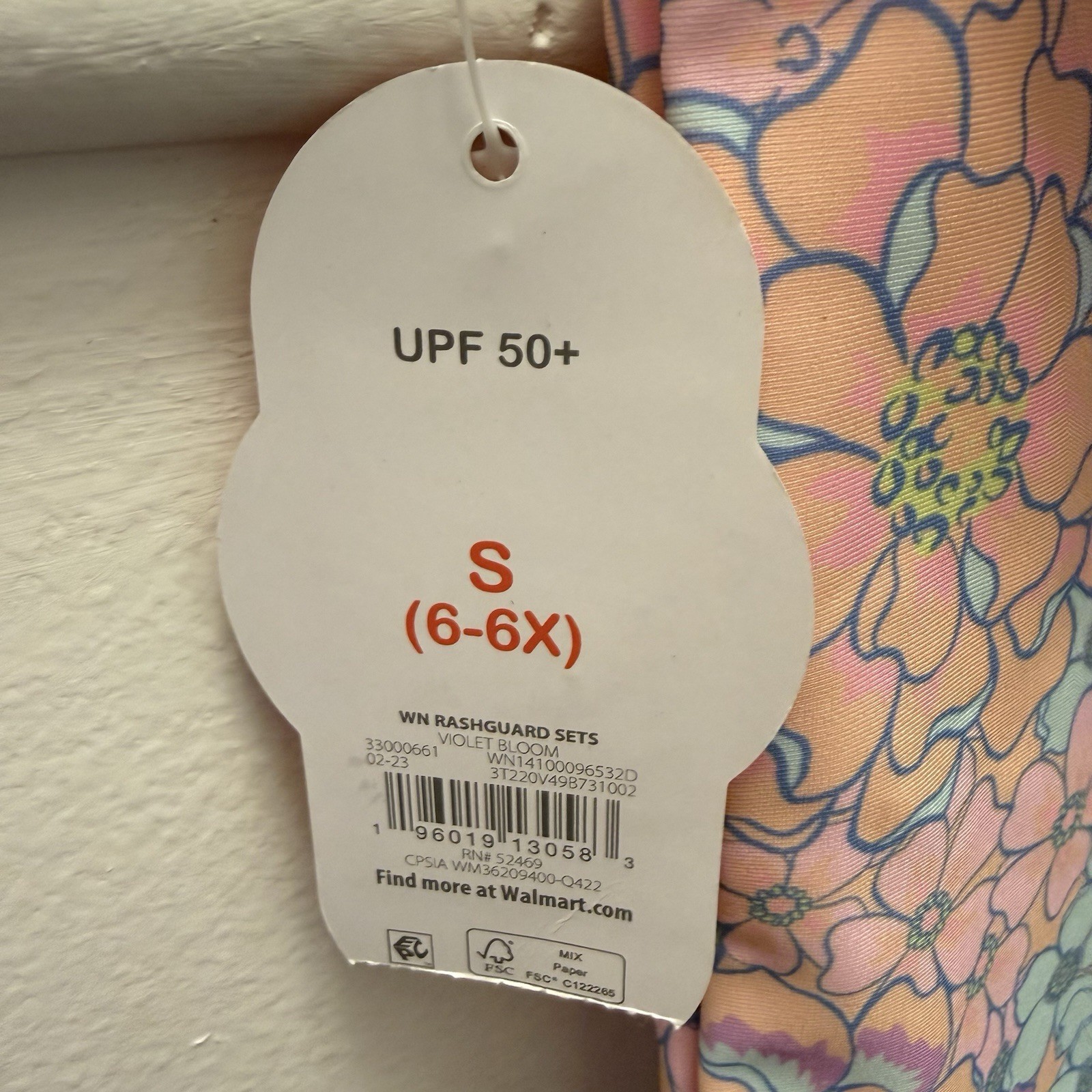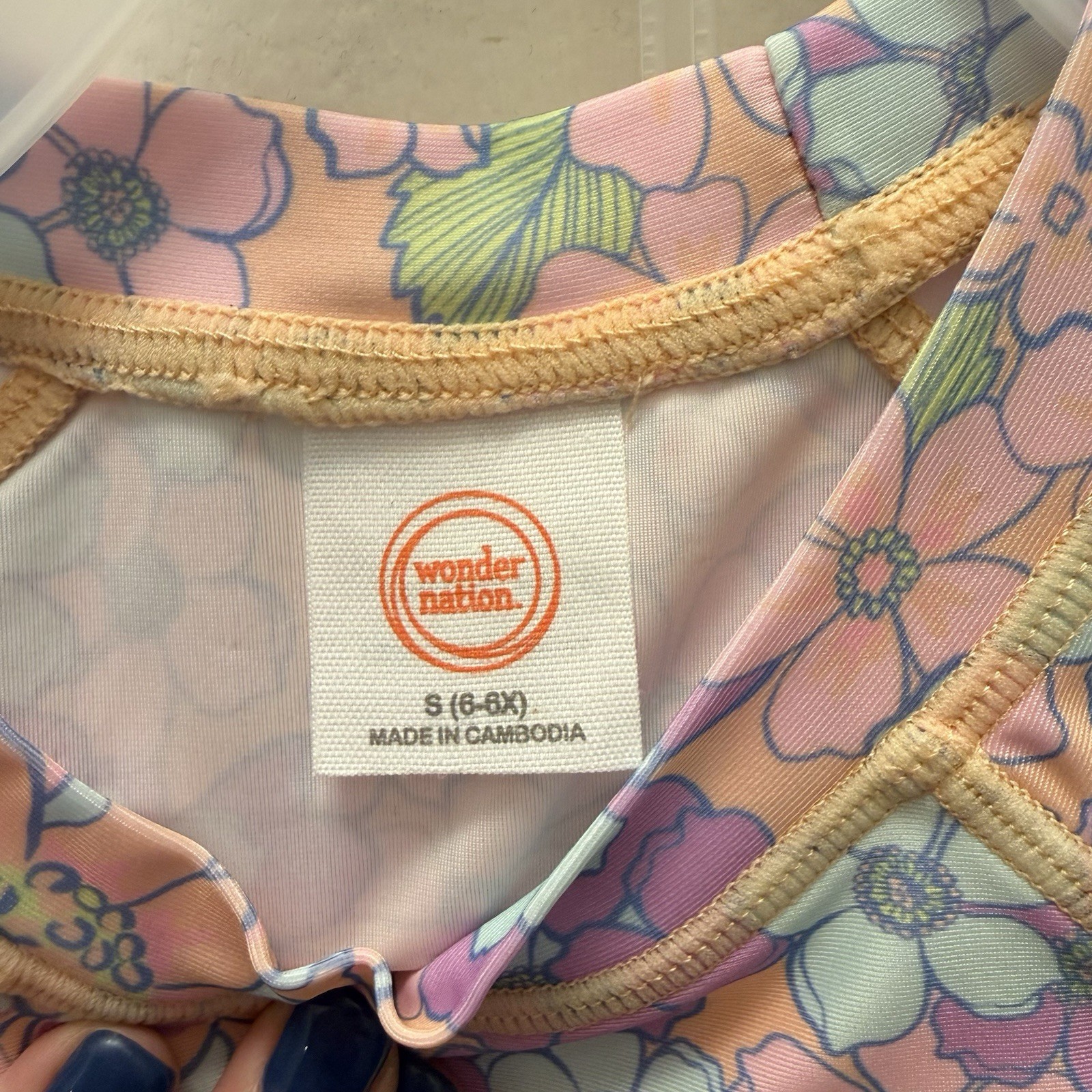как выглядит Wonder Nation Girls 2-Piece Rash Guard Swimsuit Floral UPF 50 Size 6 6X / 7 8 фото