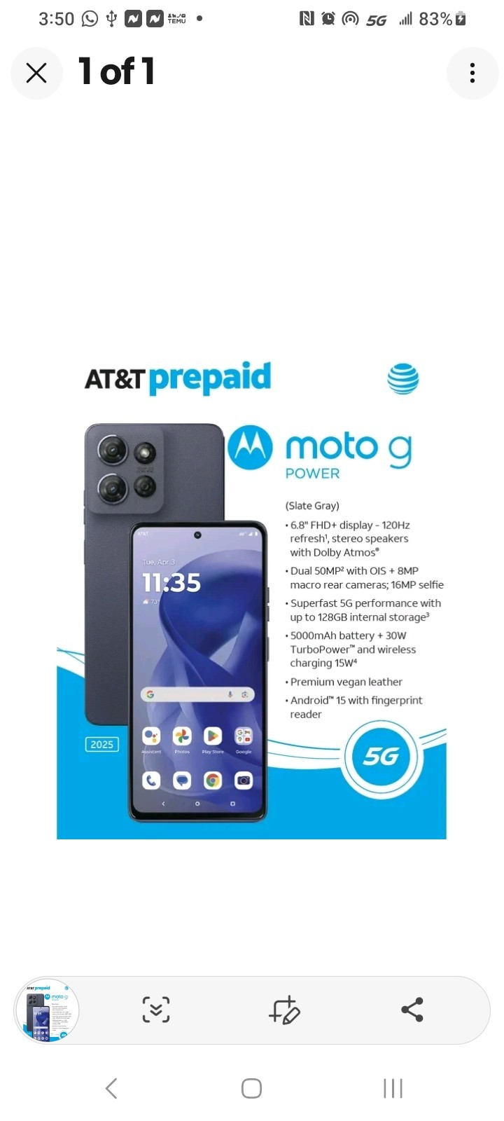 Motorola Moto G Power 2025 128GB ATT Prepaid New Sealed Slate Gray
