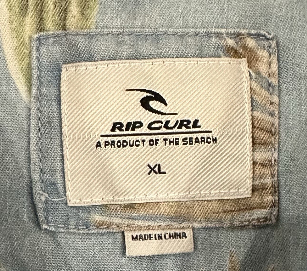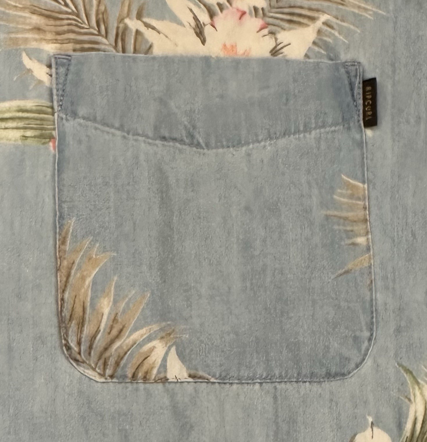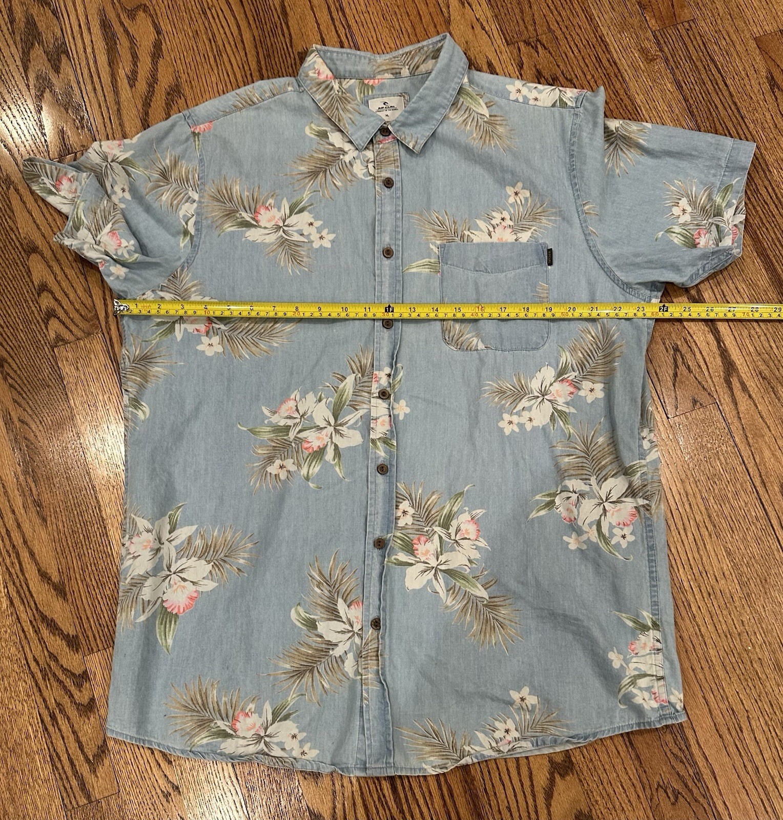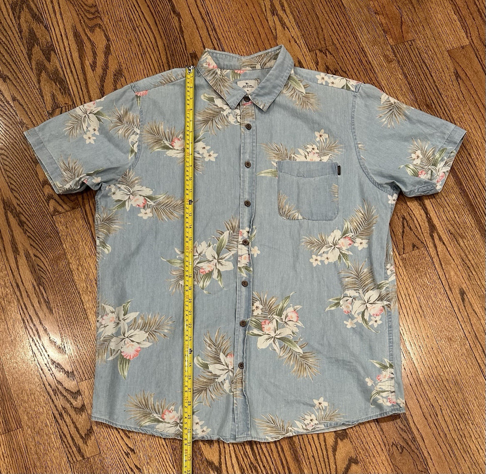 как выглядит Rip Curl Men s XL Hawaiian Floral Button Up Shirt Blue Chambray Short Sleeve фото