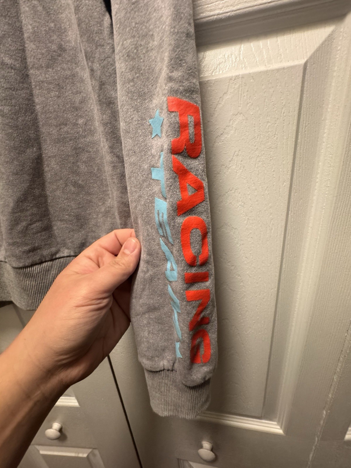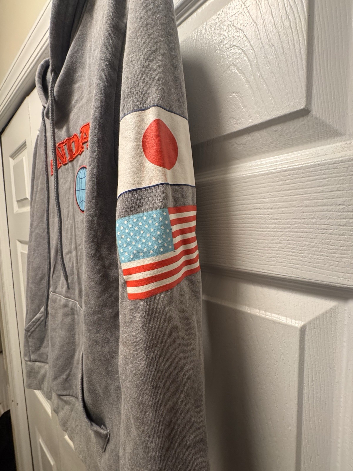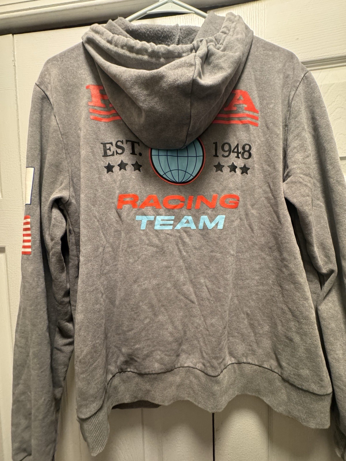 как выглядит Honda Racing Team Hoodie Adult Medium Gray Vintage Wash Japan USA Flag Logo фото
