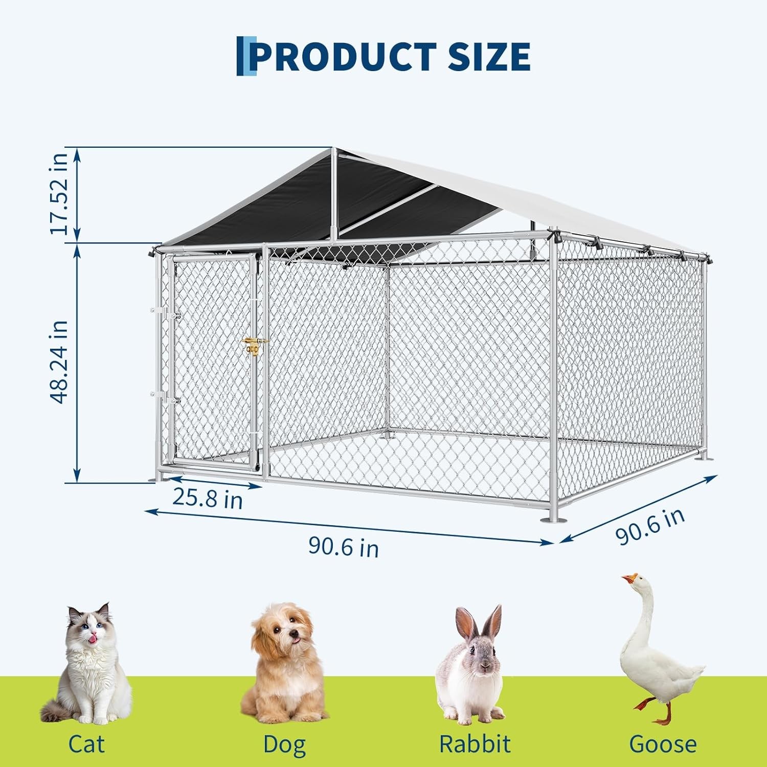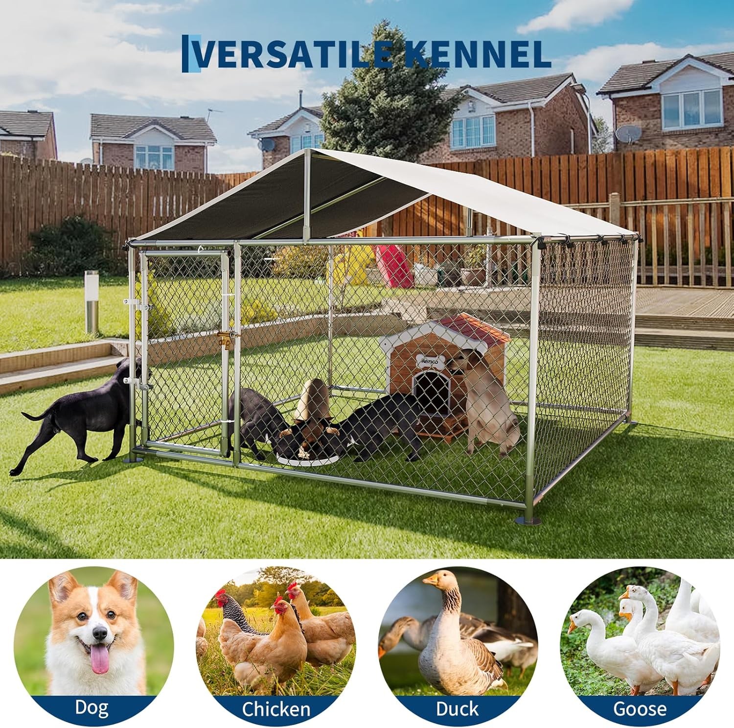 GRAVEE Large Dog Kennel Outdoor with Roof, Heavy Duty Pet Fence Enclosure