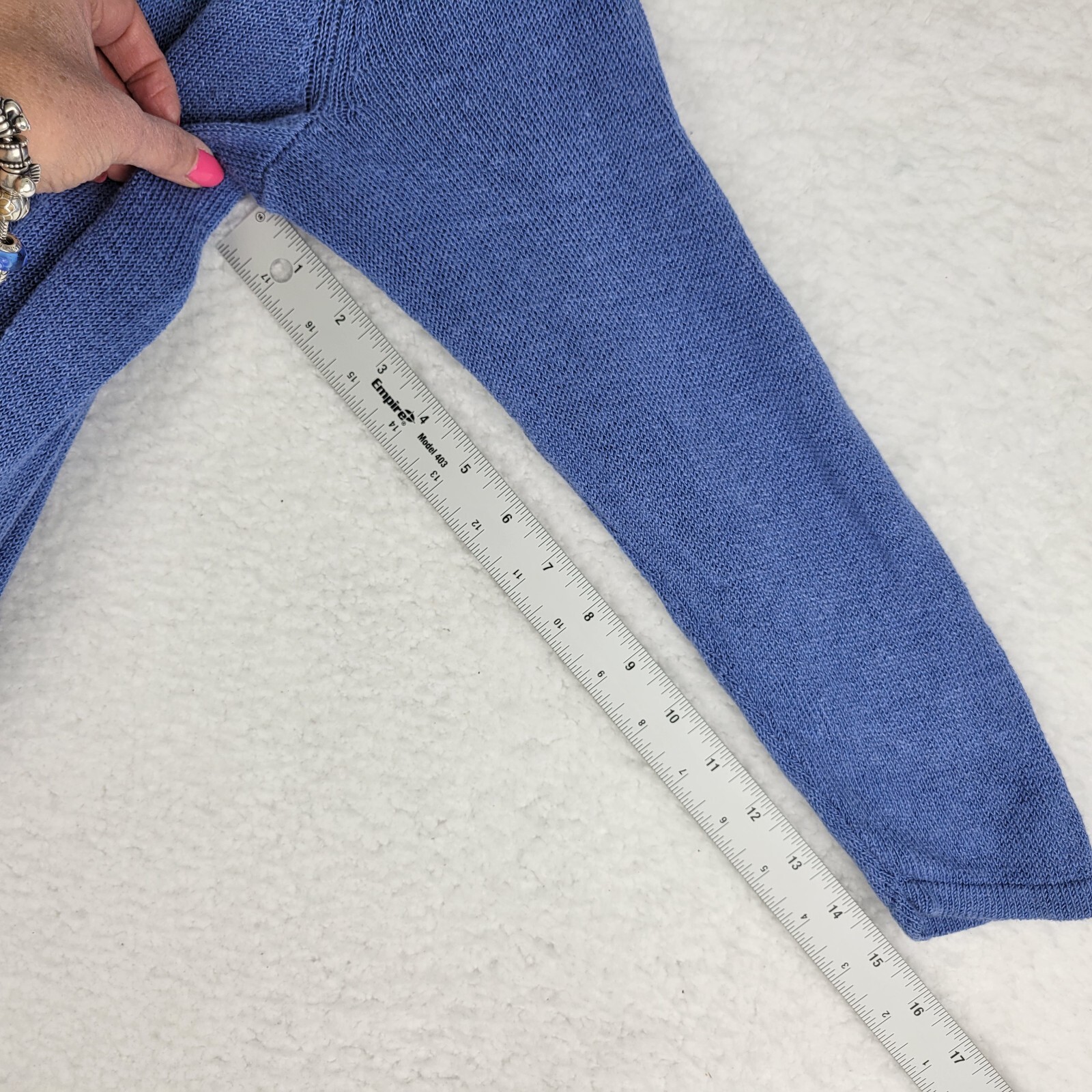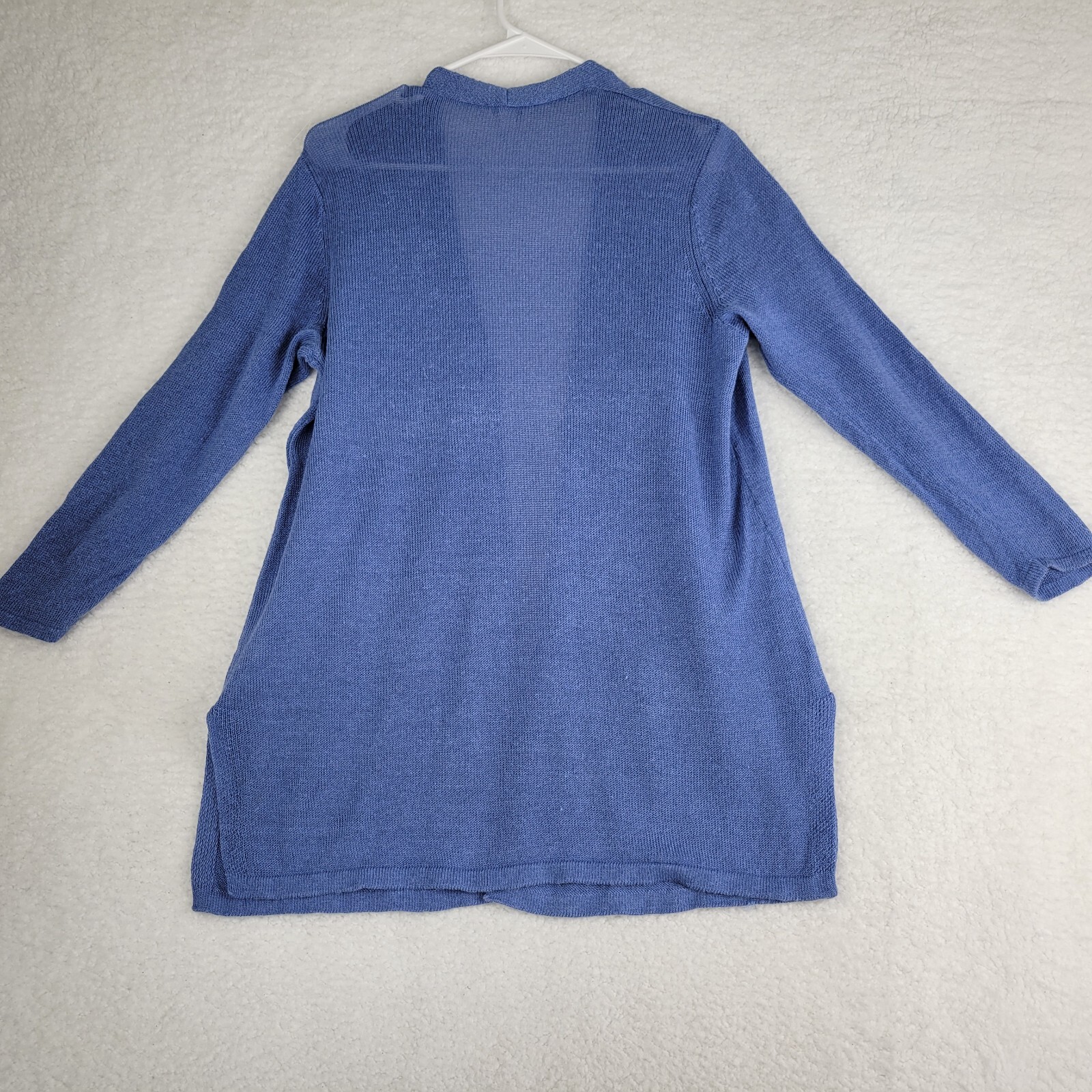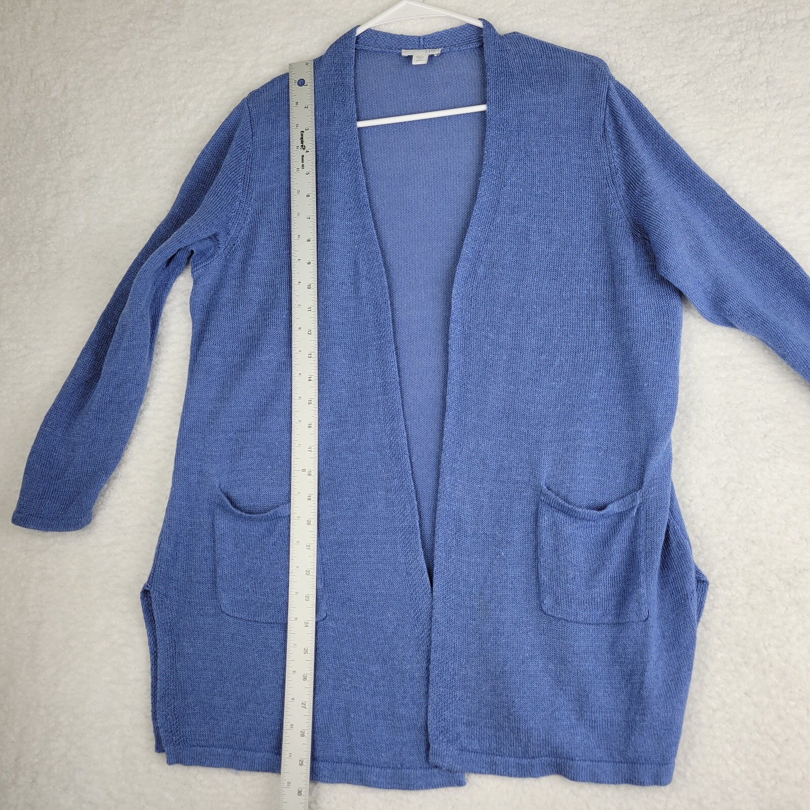 J Jill Long Linen Blend Open Front Knit Cardigan Pockets Women's Large Petite