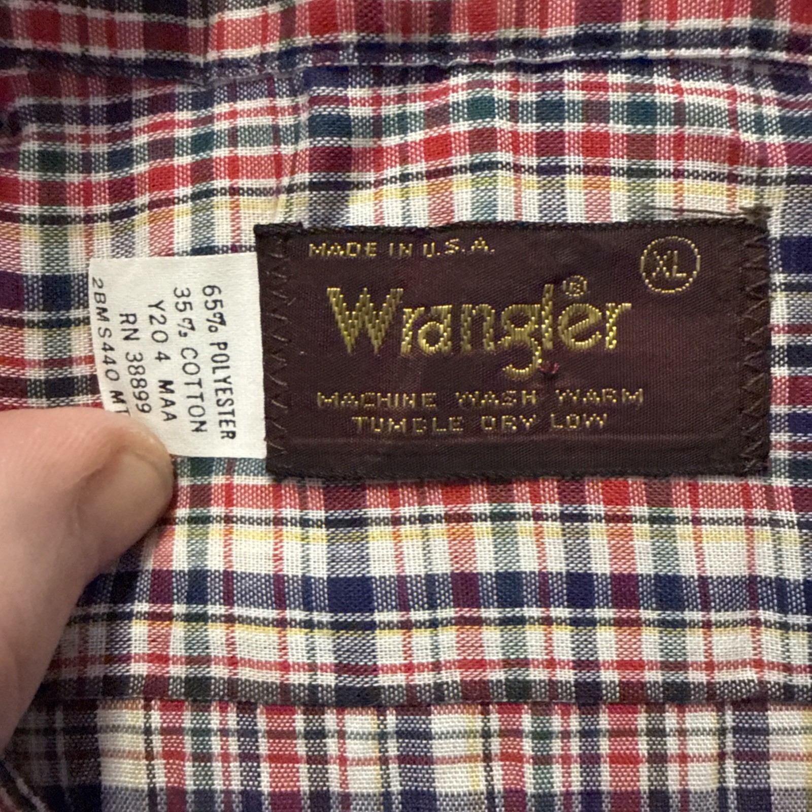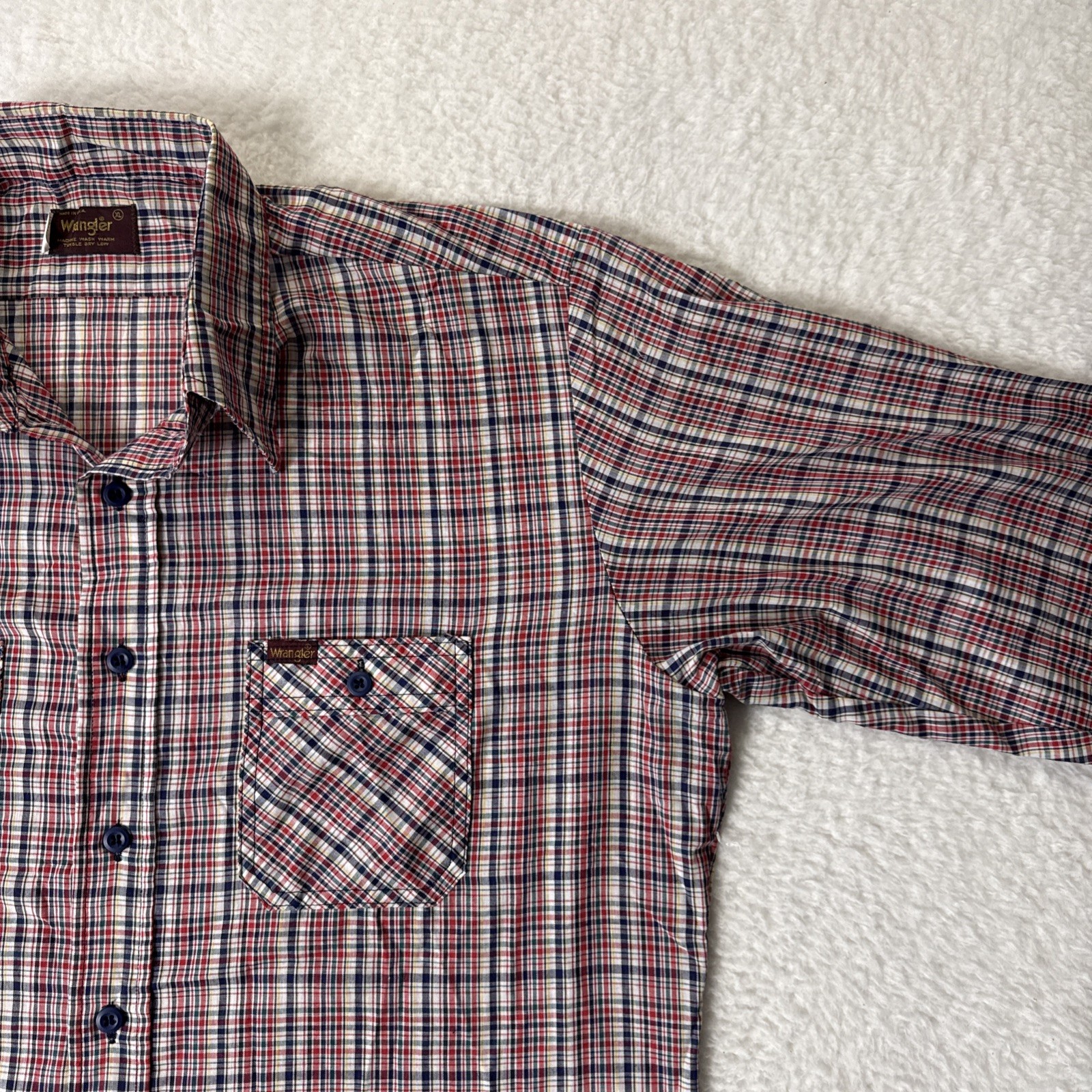 как выглядит Vintage Wrangler Western Button Up Long Sleeve Shirt Plaid XL 70s 80s USA Made фото
