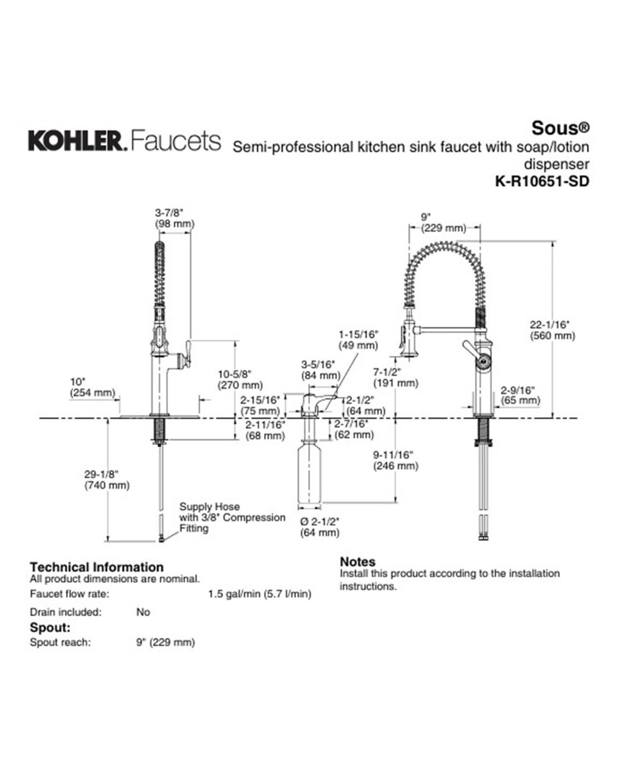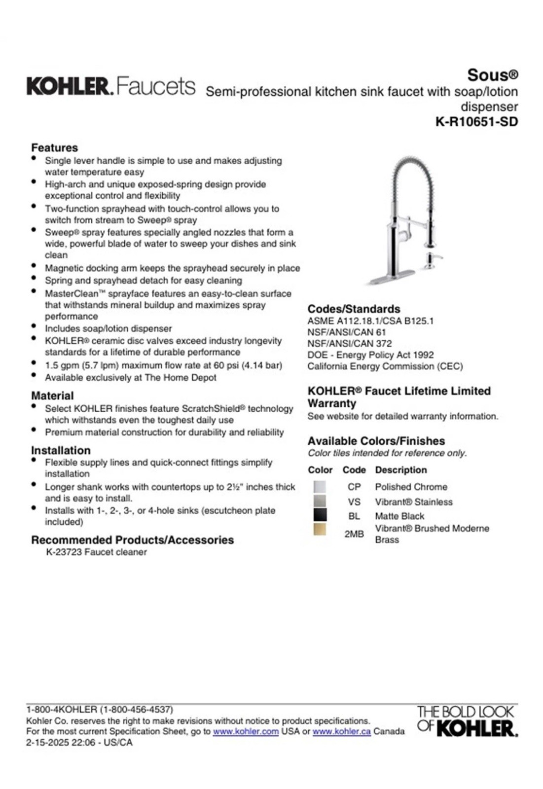 Kohler Sous Pro Style Pull Down Kitchen Vibrant Stainless Steel R10651-SD-VS New