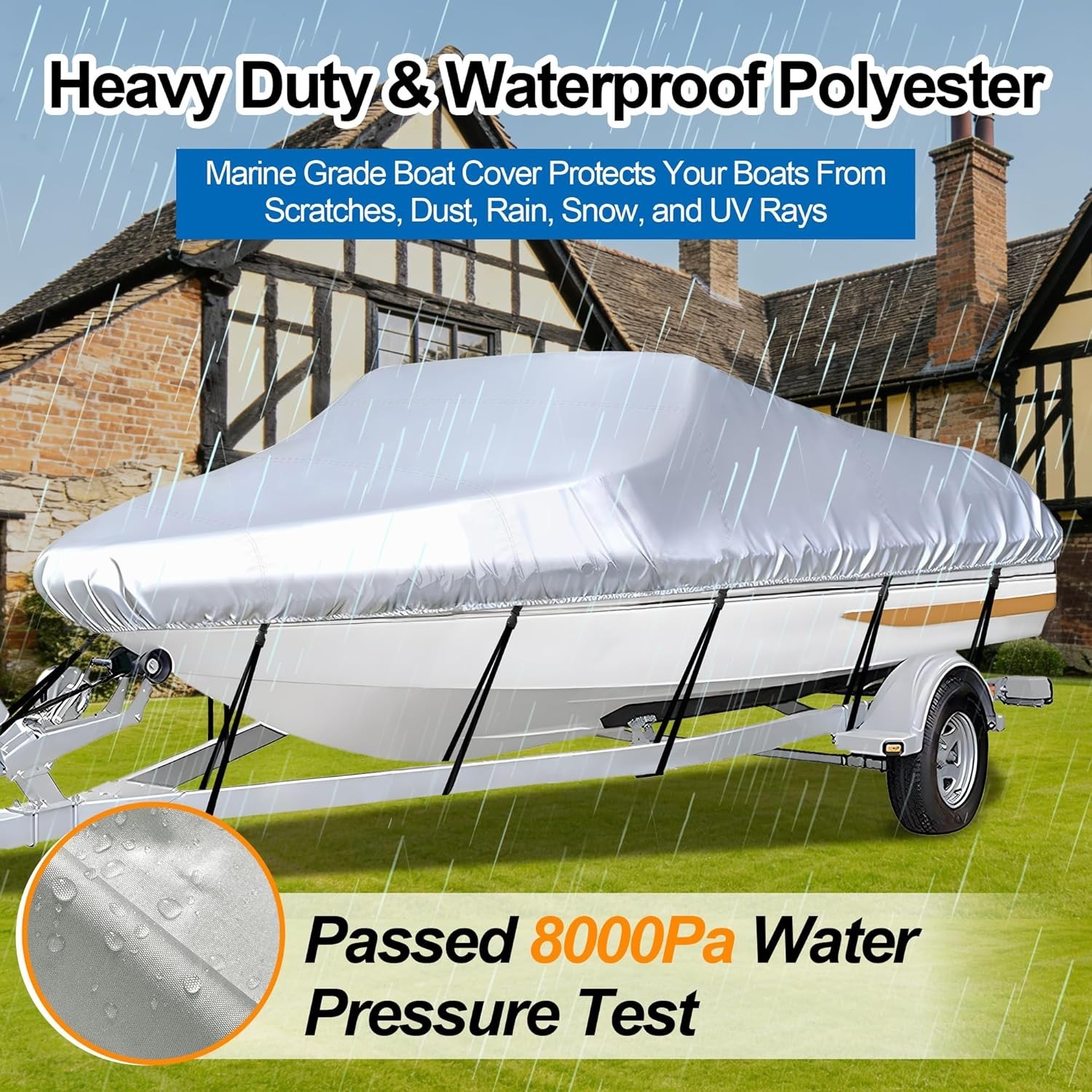 Trailerable Boat Cover- 17'-19' Heavy Duty Waterproof Tarp Covers with Storag...