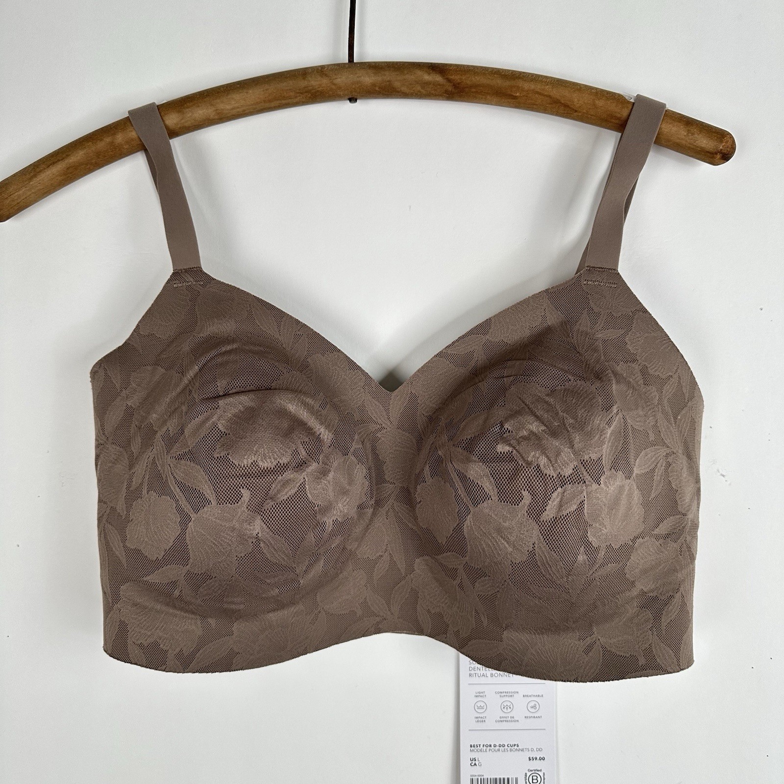 как выглядит Athleta Ritual Lace Adjustable Bra LARGE 38 Cup Sz D-DD Pyrite Brown Pull On NWT фото