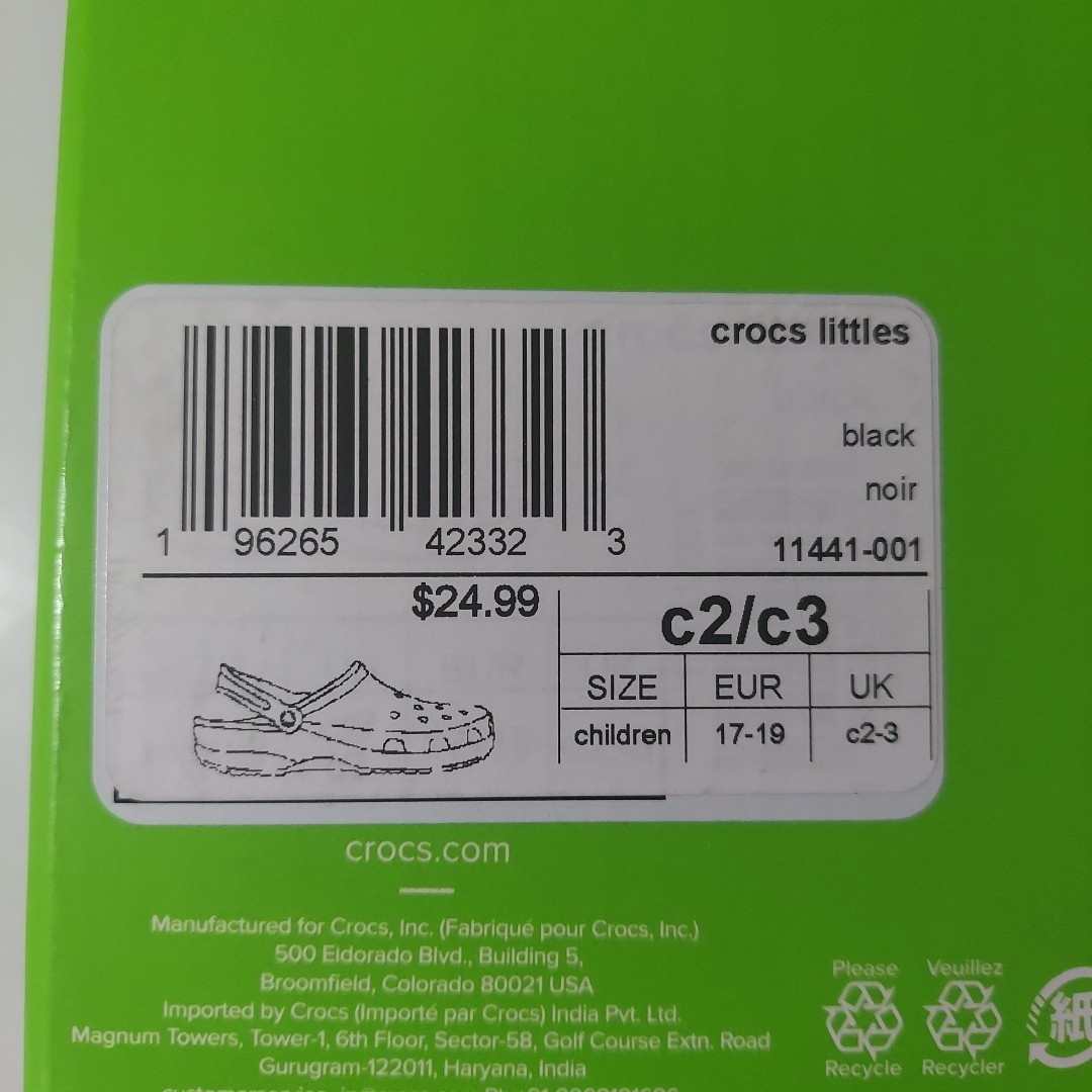 Crocs Classic Littles Clog Black 11441-001 Baby Toddler Shoes Size 2c/3c