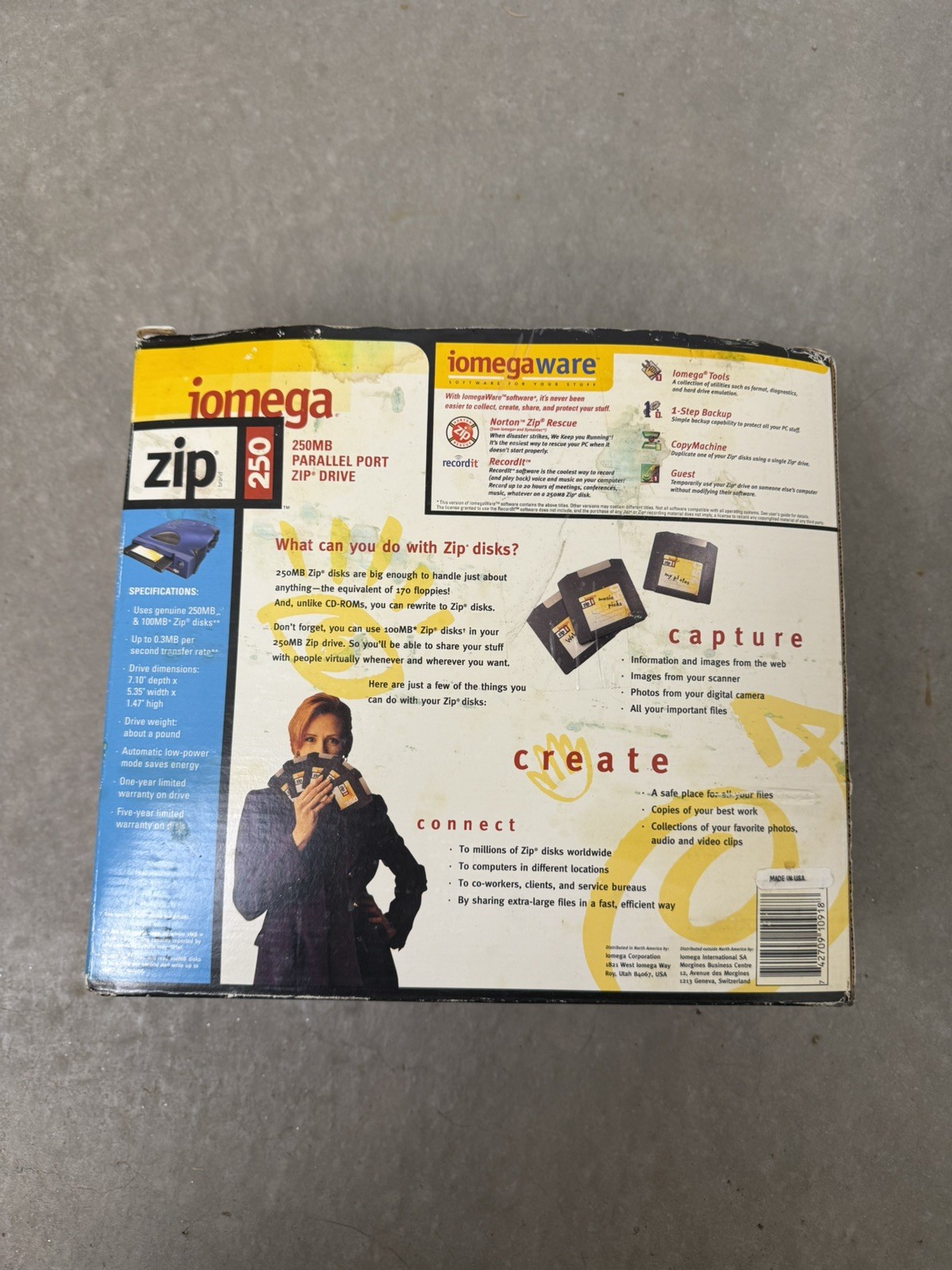 Iomega 250MB External Zip Drive Parallel Port Box Working Complete