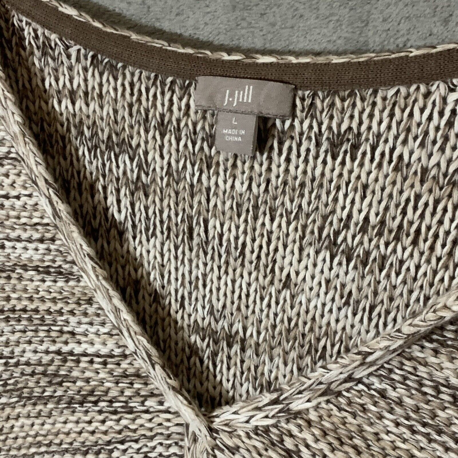 как выглядит J Jill Chunky Knit Sweater Beige Large Women Cottagecore V Neck Long Sleeve Cozy фото