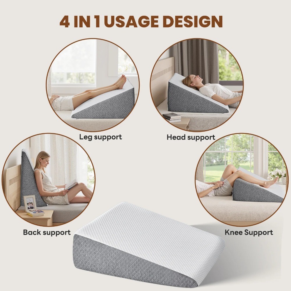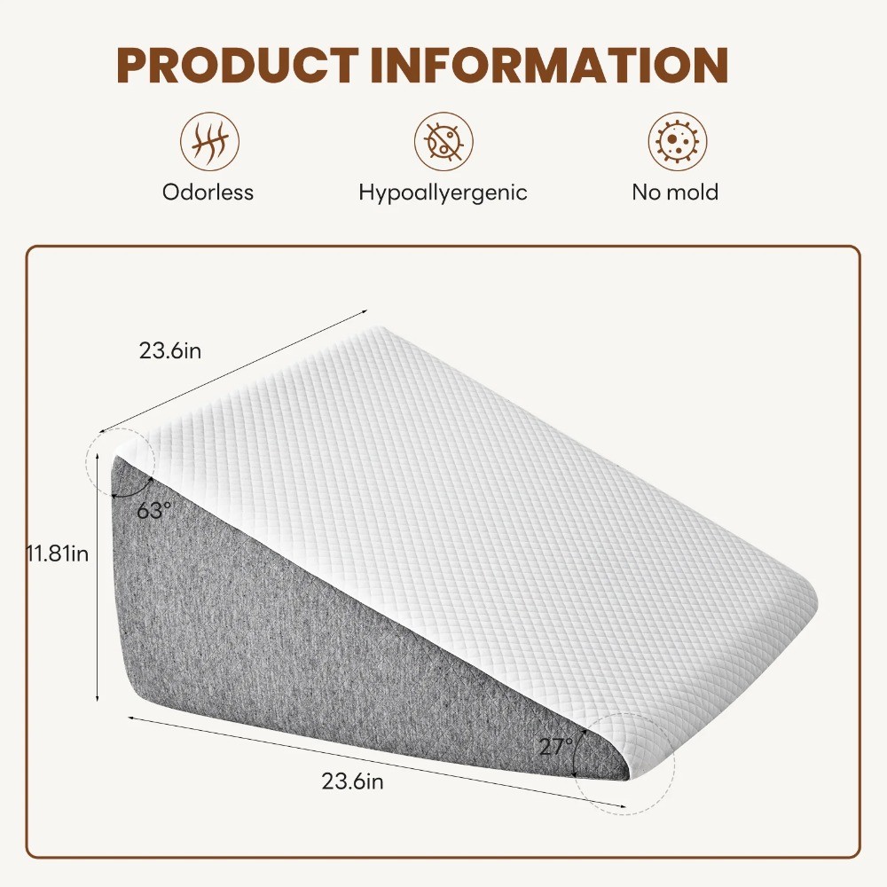 как выглядит Memory Foam Bed Wedge for Snoring Leg Elevation, White Gray, 23.6 23.6 12in фото