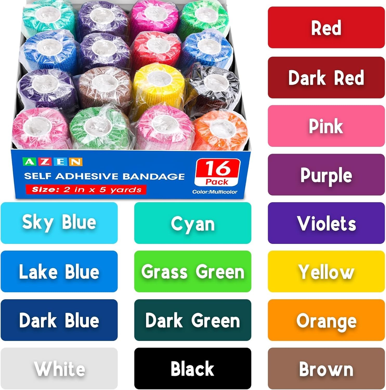 16 Pack Self Adhesive Bandage Wrap 2 X 5 Yards Elastic Cohesive Bandage Wrap...