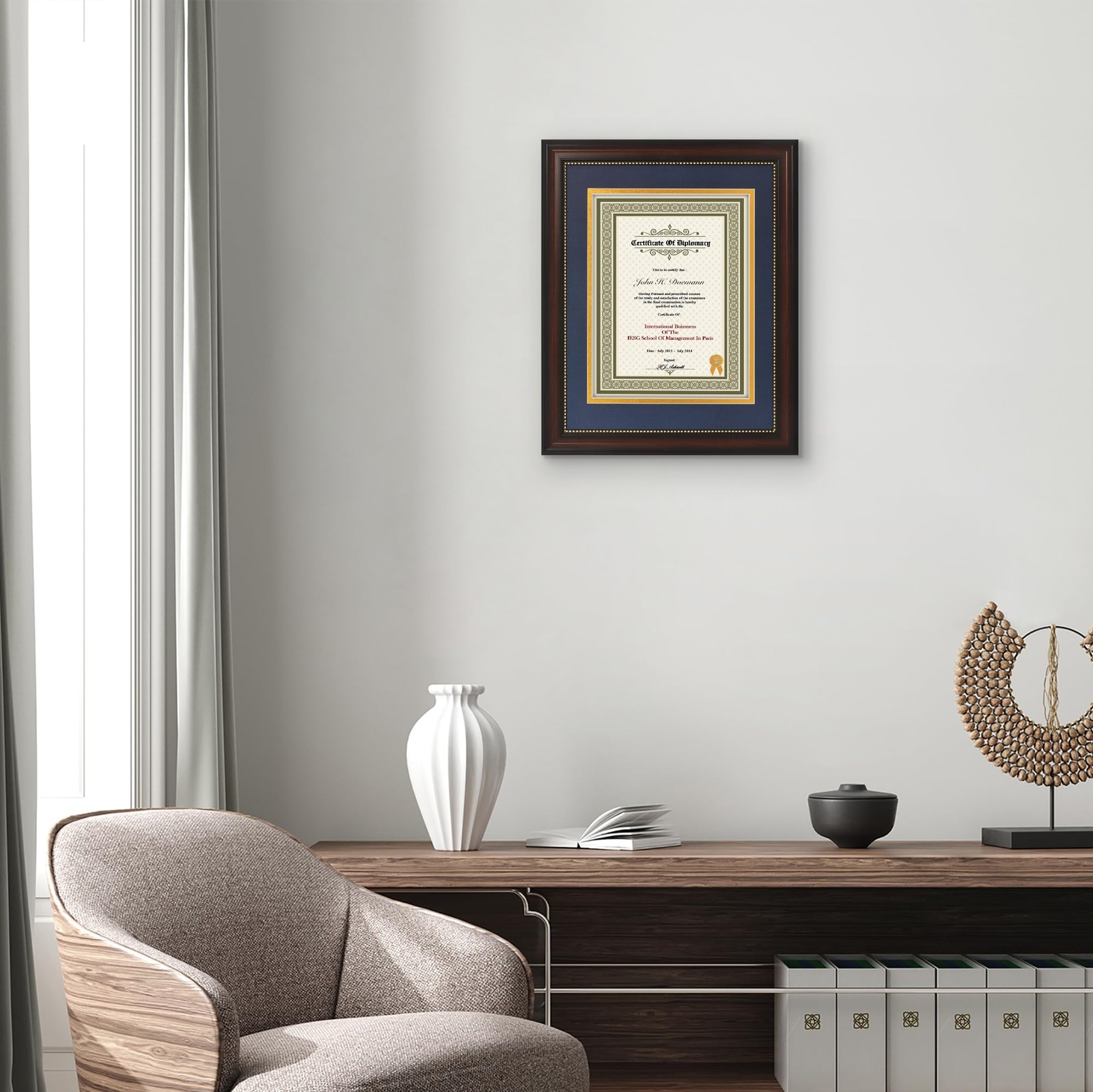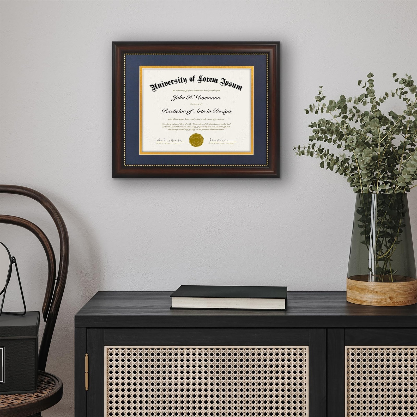 Americanflat 11x14 Diploma Frame - Use as 11X14, Mahogany Blue Gold mat