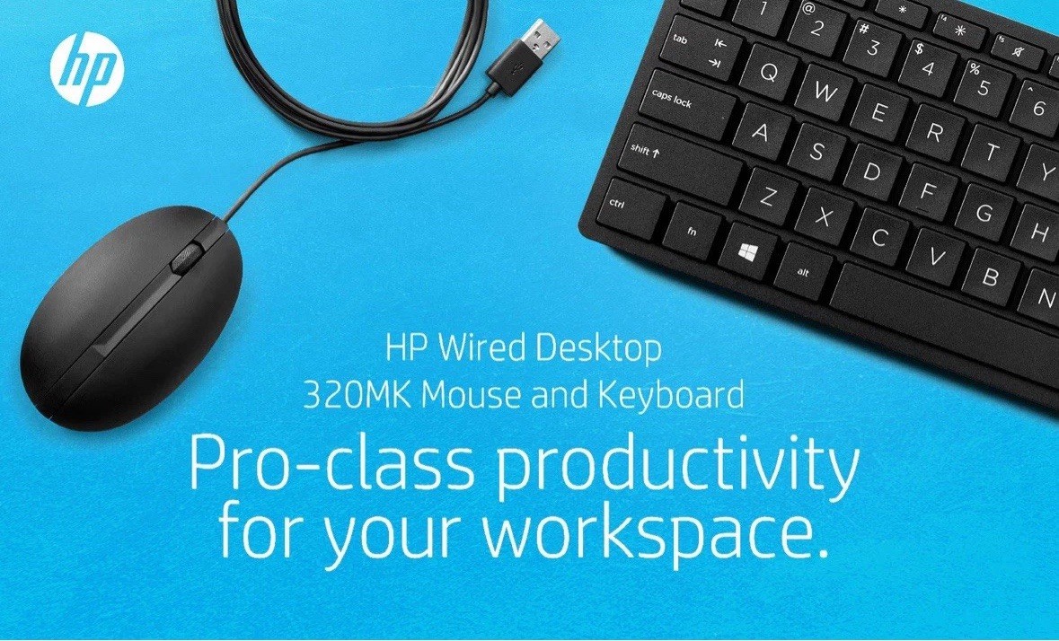 New In Sealed Box HP Wired Desktop 320MK Mouse and Keyboard,USB 9SR36UT AB