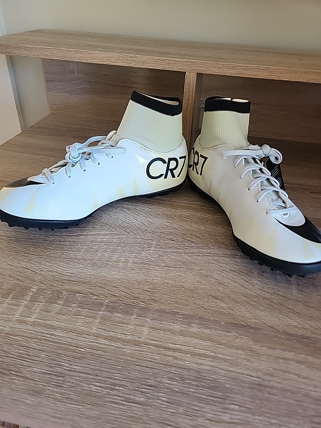 как выглядит Nike Jr MercurialX Victory 6 CR7 IC Kids Soccer Shoe - White/Black/Gold Size 6 фото