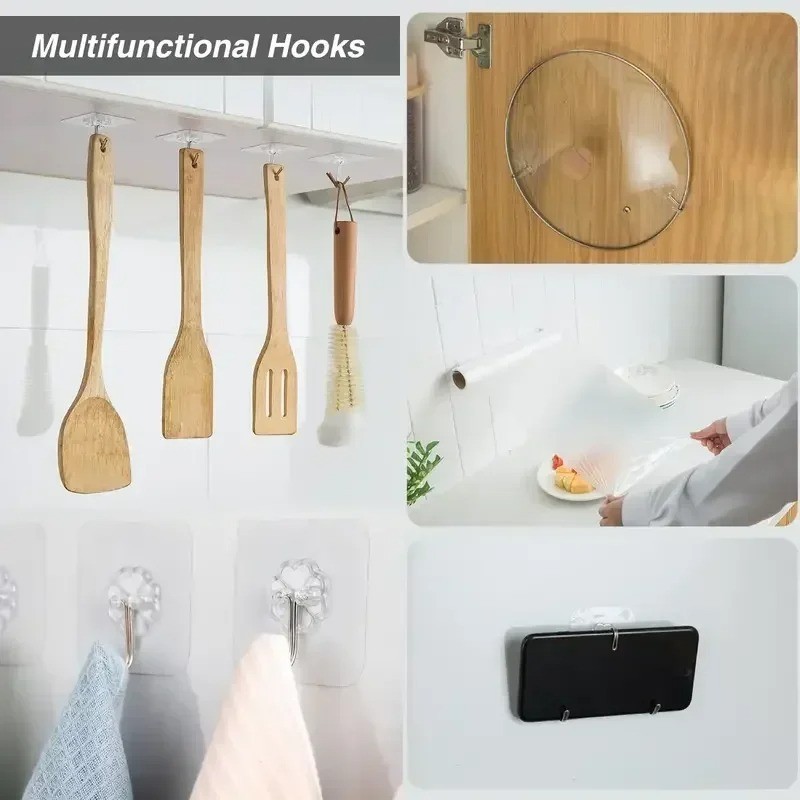 50 Pack Heavy Duty Adhesive Wall Hooks No Drill Seamless Stick On Hangers Clear