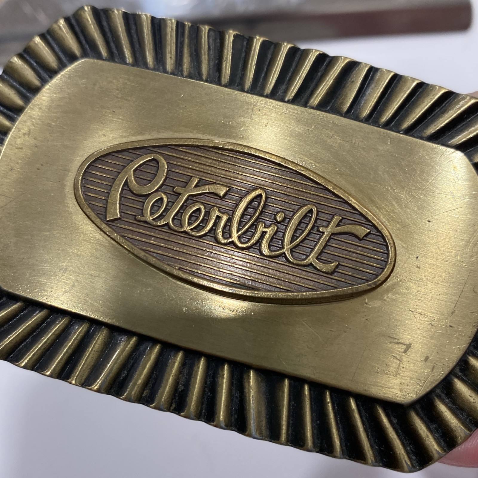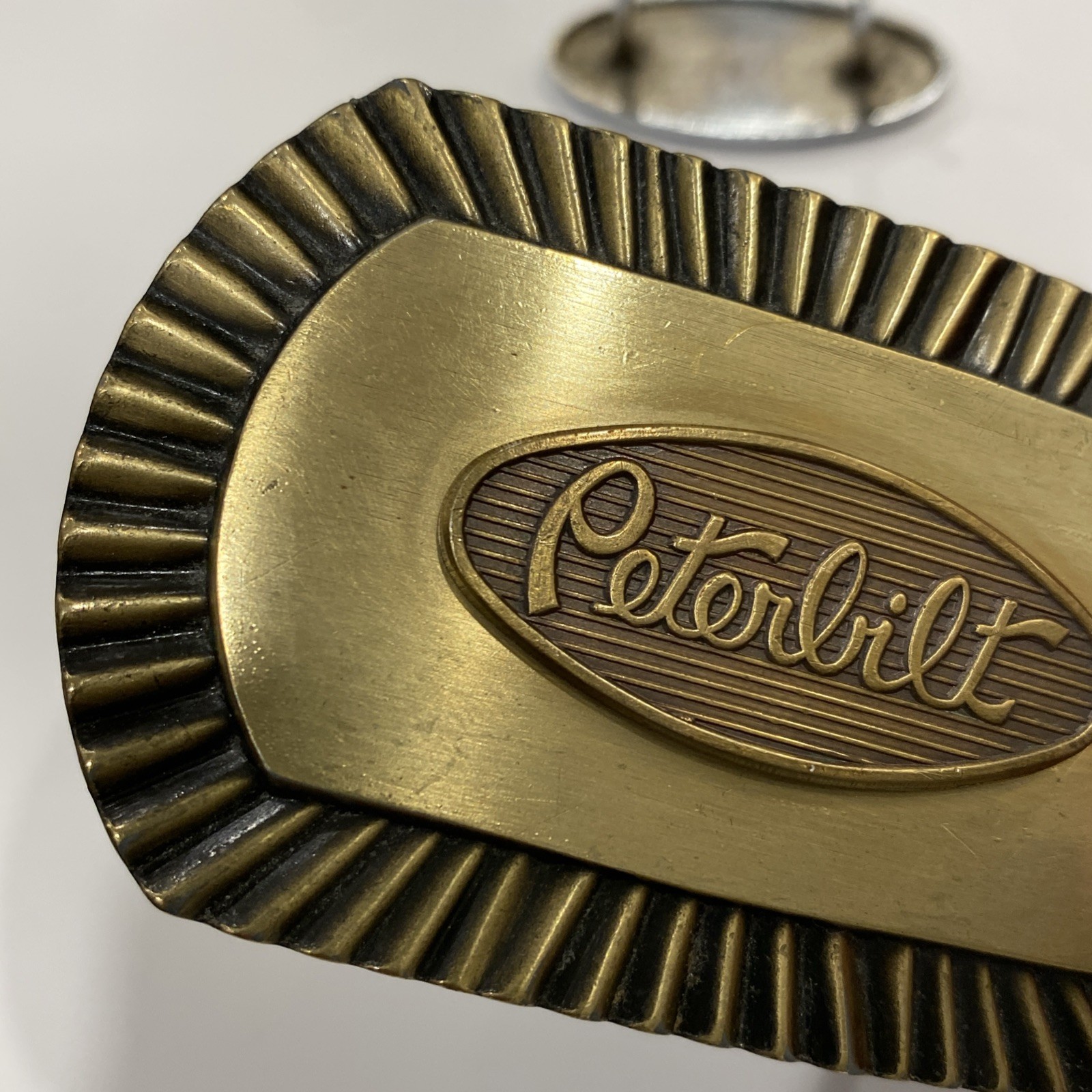 • Vintage Peterbilt Red 1 3/4 Enamel Logo Emblem Brass Color Belt Buckle Lot