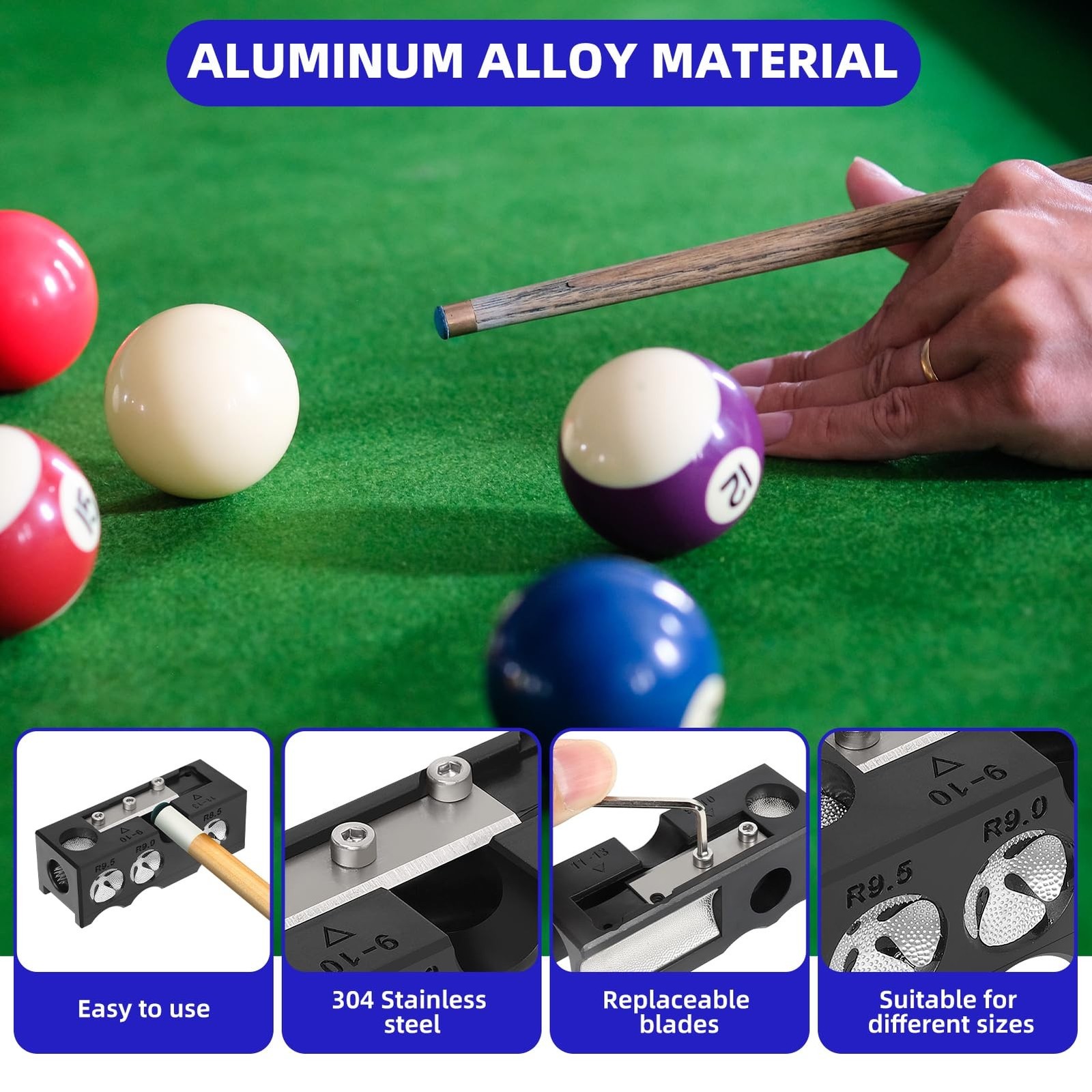 Desoto 11-in-1 Billiards Pool Cue Tip Shaper and Repair Tool Kit, Cue Tips Re...