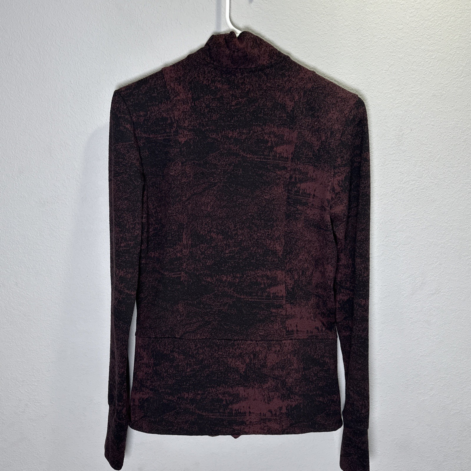как выглядит Athleta Women s Shanti Jacquard Jacket Burgundy Size medium full zip thumb holes фото