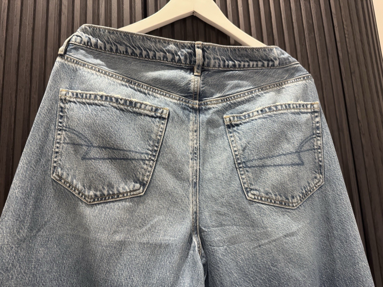 как выглядит AE Dreamy Drape Stretch Super High-Waisted Baggy Wide-Leg Jean- Size 12 short фото