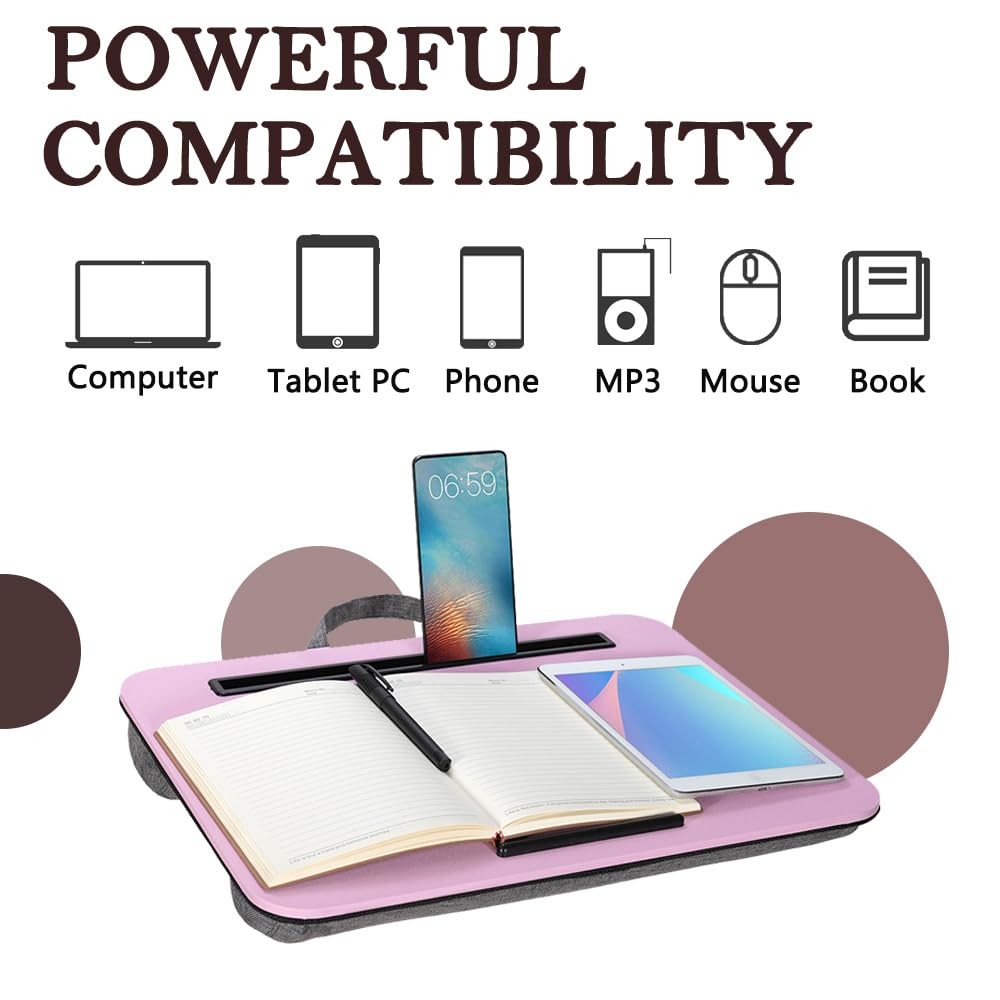 Portable Laptop Desk Fits Up To 16 Inch Laptops Tablet Slot Cushion Pink Medium