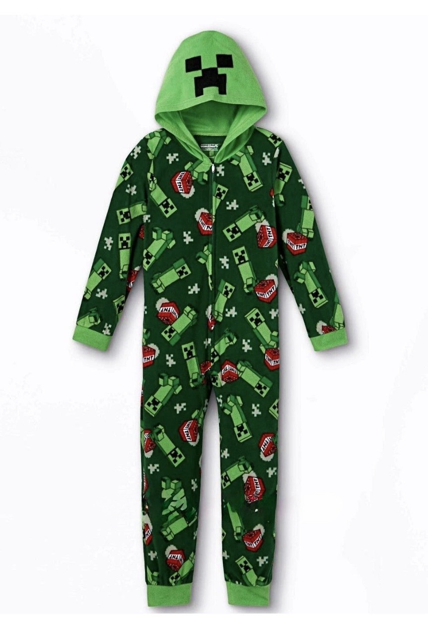 как выглядит Boys Minecraft Fleece Pajamas W/Hood EUC - Size 6-7 фото