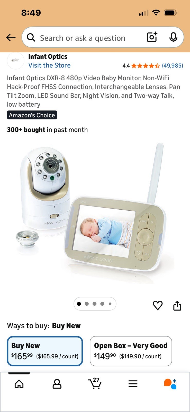 Infant Optics Dxr-8 Video Baby Monitor With Interchangeable Optical Lens