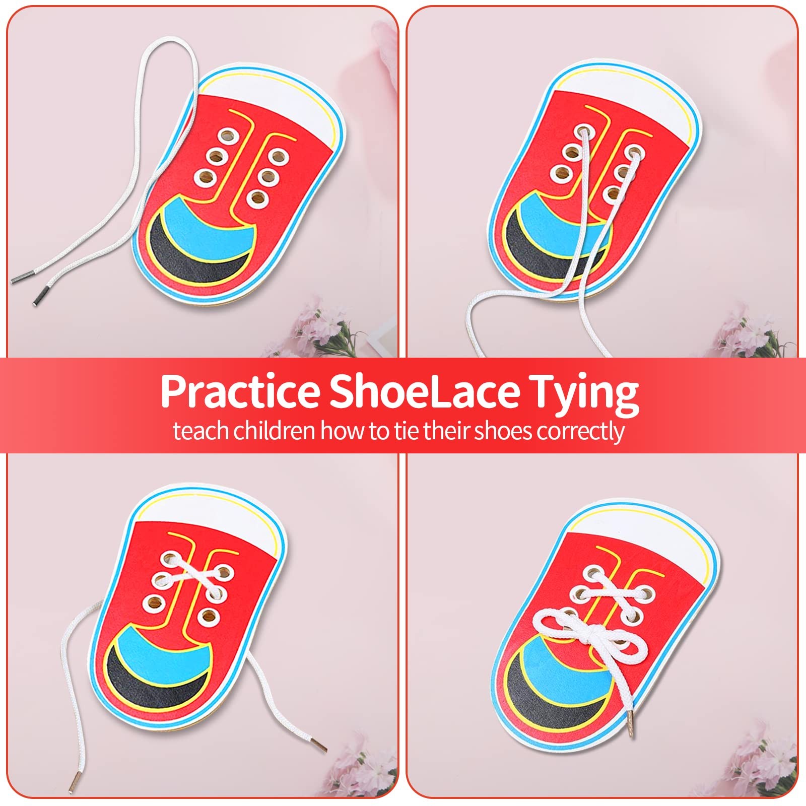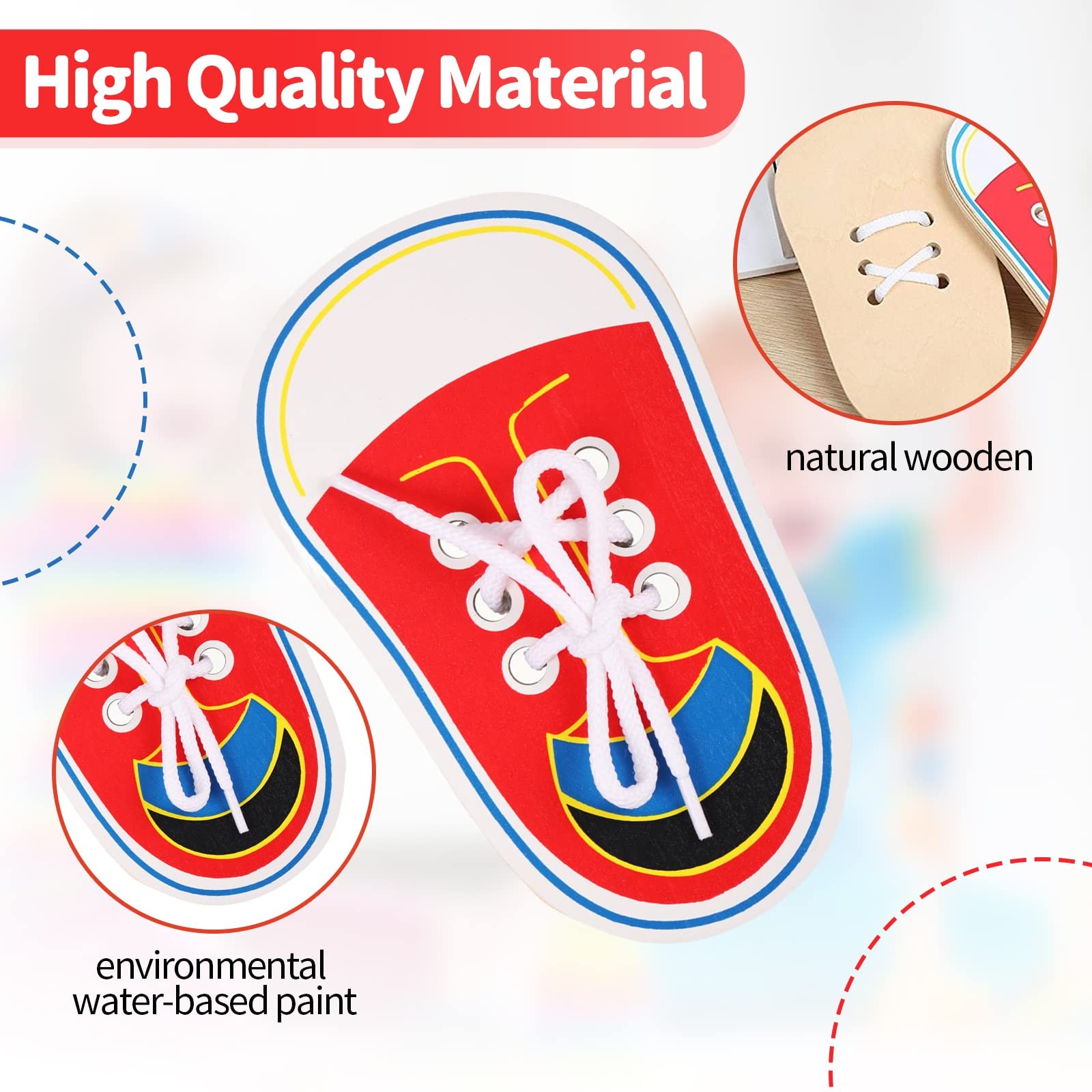 как выглядит Wooden lace-up shoes, tie laces to learn how to practice laces for... фото