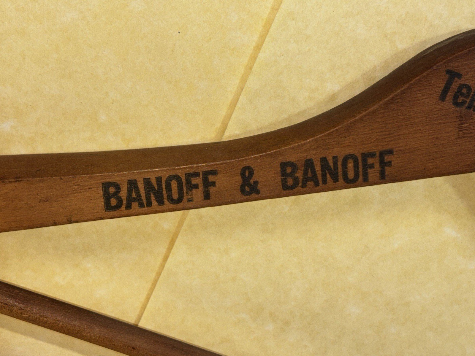 как выглядит Vintage 17 Banoff Banoff Mt. Vernon NY Wooden Clothing Hanger Advertising фото