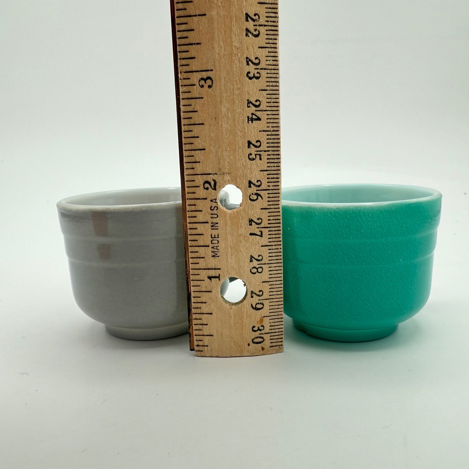 как выглядит 3 Vintage HAZEL ATLAS Moderntone Platonite Little Hostess Tea Cups 1.75" MCM фото