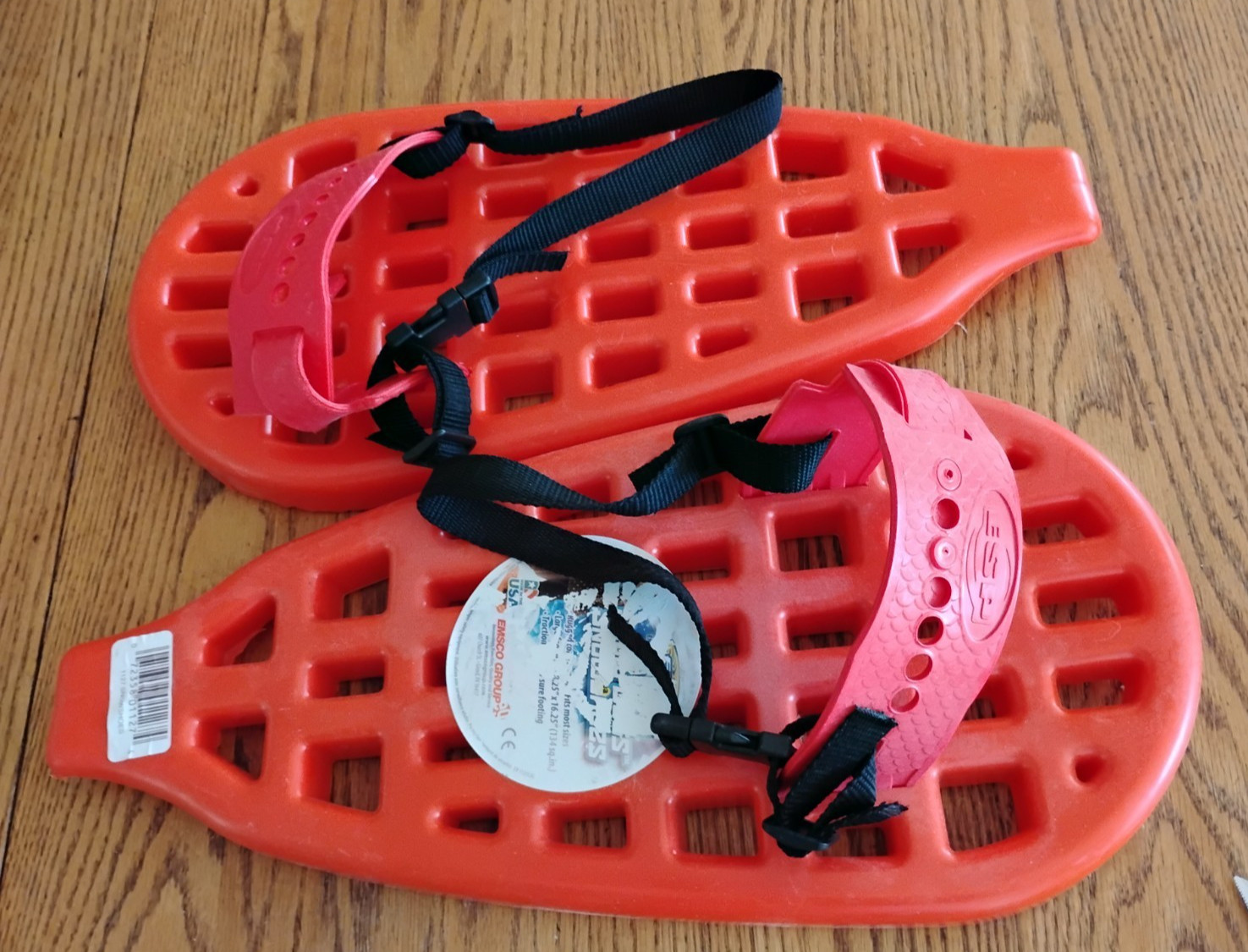 как выглядит Emsco Snow Dogs Snowshoes Orange plastic ESP 16 x 8 inches New with Tags фото