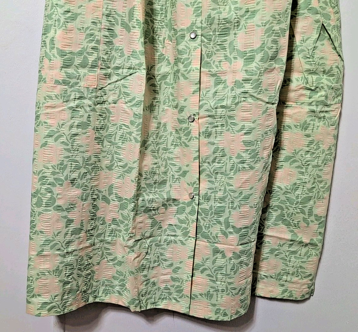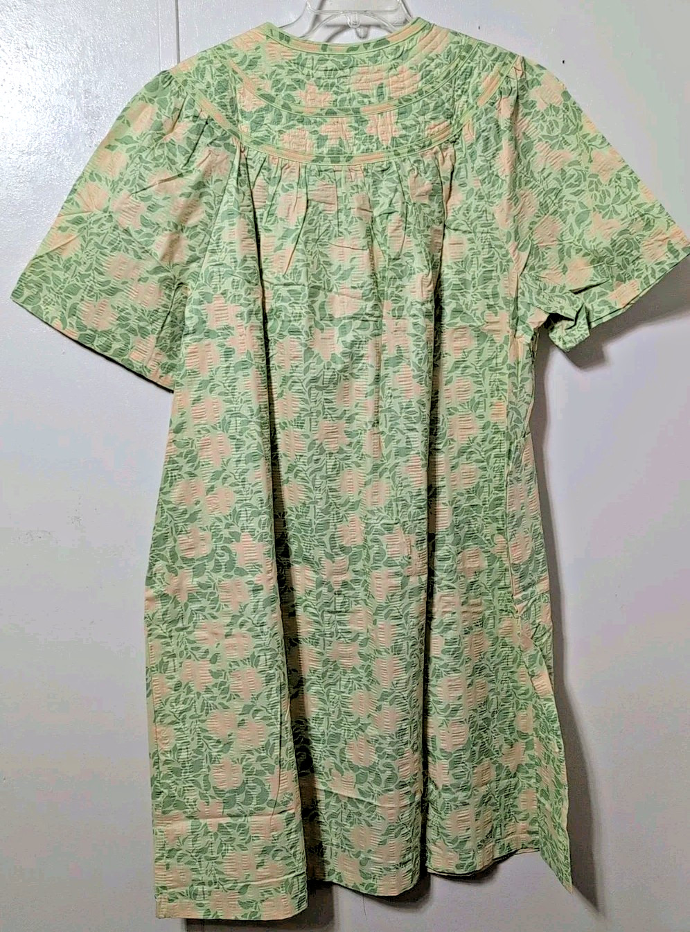 как выглядит National Womens Housecoat Sz 3X Front Snaps Pockets crinkle short sleeves NEW фото