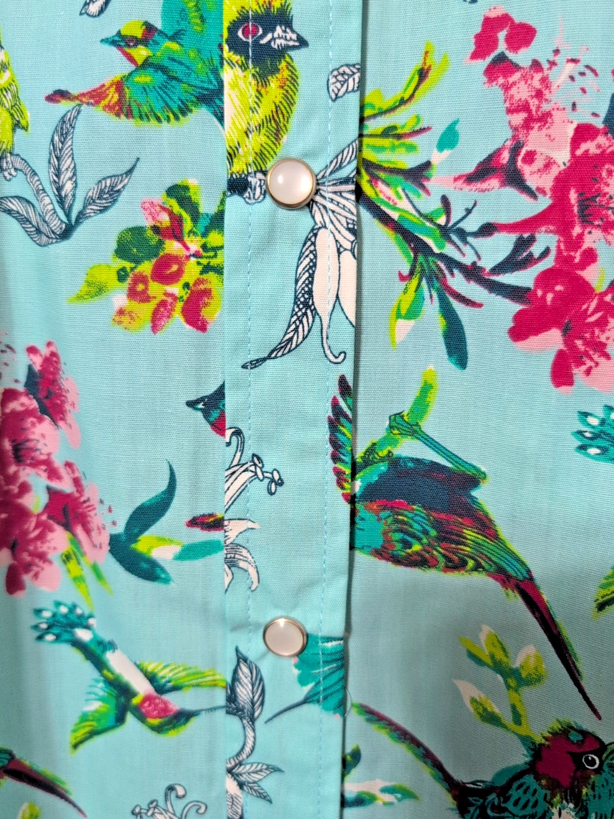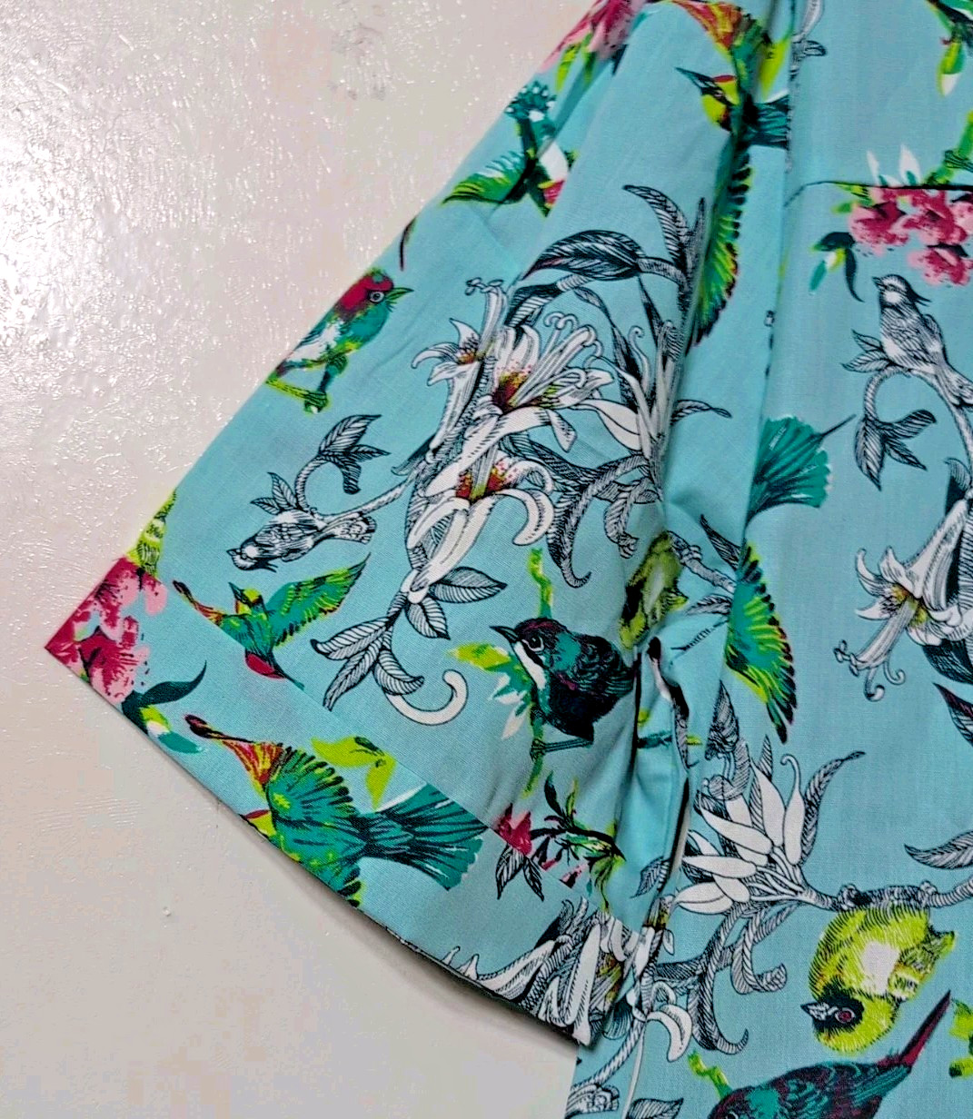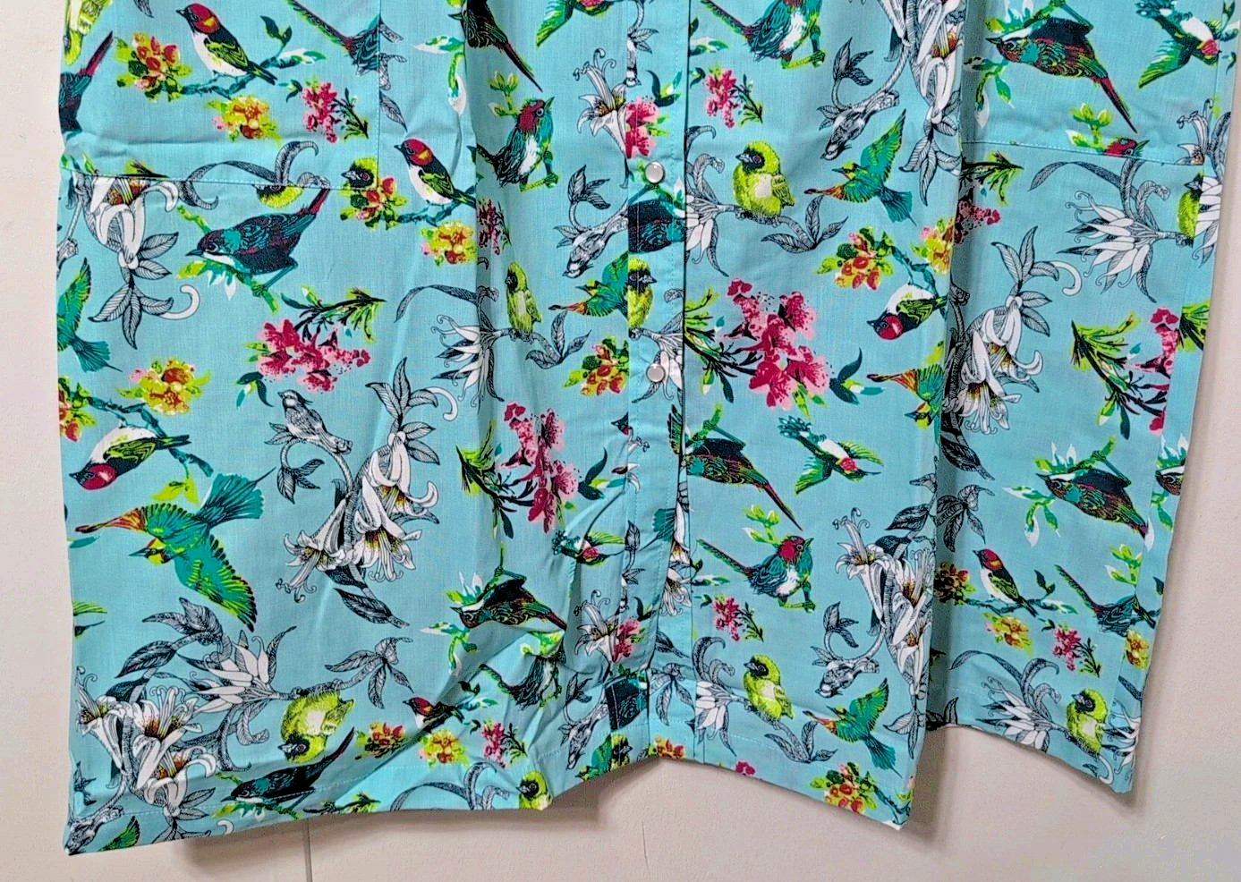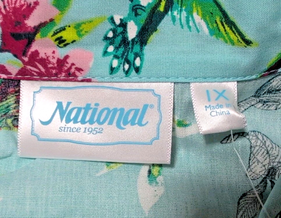 National Dress 1X Housecoat Birds Pockets Snap Front NEW