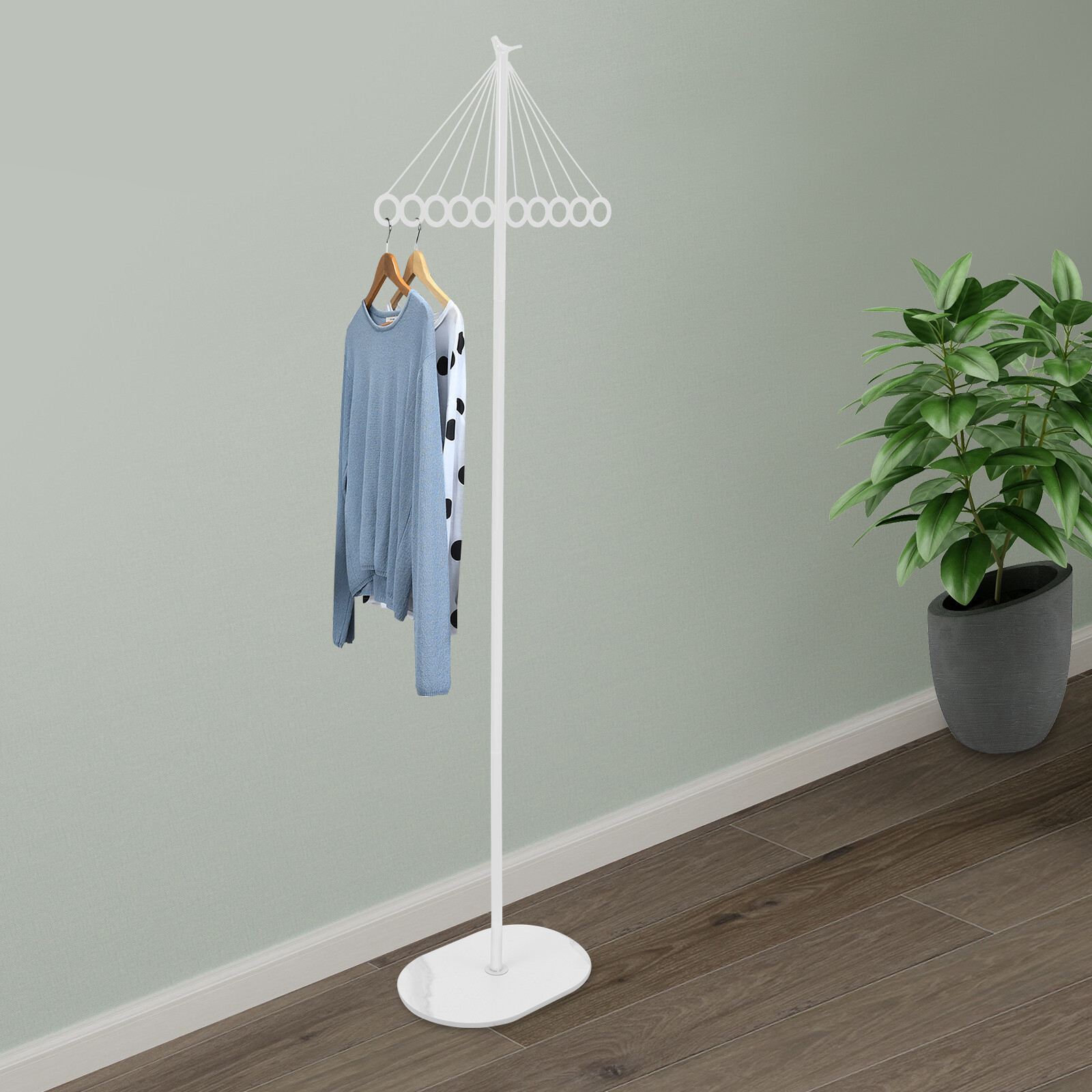 White Coat Rack Metal Clothing Rack Entrance Clothing Rack with 10 Hooks New