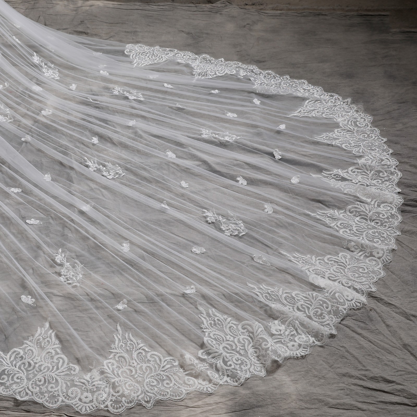 Small Flower Lace Veil with Blusher Long Bridal Veil Ivory Wedding Veil