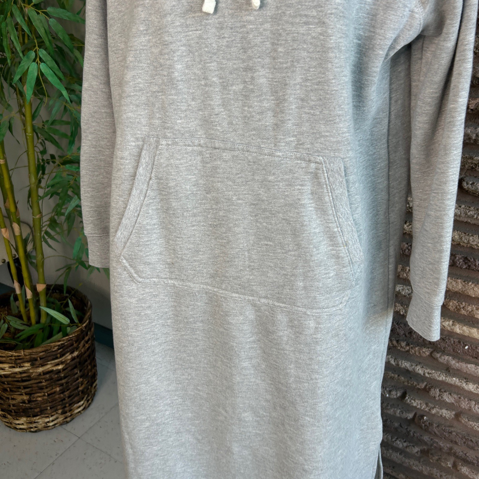 Lands' End Gray Hooded Fleece lined Lounger Robe House Dress Cozy Size Medium